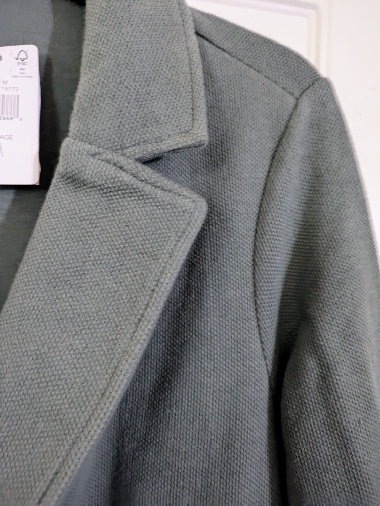 Crafted for the modern woman, the Matty M cardigan offers a seamless blend of comfort and style. Embrace the simplicity of its solid olive green hue, a versatile choice that pairs effortlessly with any outfit. This long-sleeved coat, tailored in a regular size small, is designed to provide a flattering fit while ensuring warmth and ease of movement. Ideal for layering, the coat's type caters to both on the go, casual and semi-formal settings. Its unbranded design speaks to its understated elegance, making it a timeless addition to your wardrobe. Whether you're out for a walk or headed to a meeting, this coat promises to be a go-to piece in your collection.
