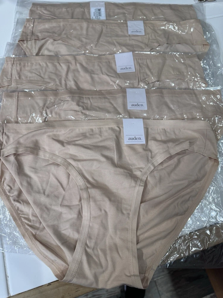 Women's Cotton Blend Bikini Underwear Auden Beige Size Large 12-14 Lot of 5 NWT