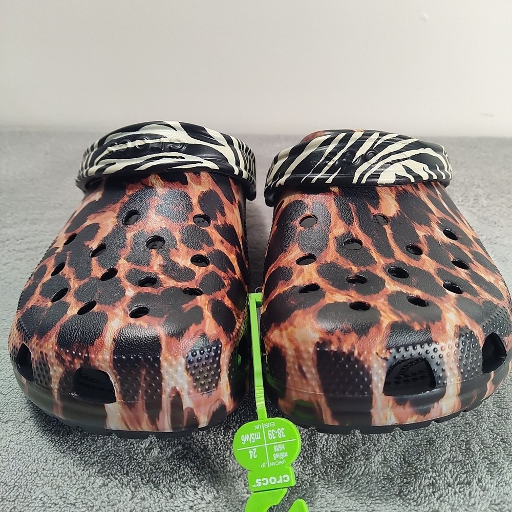 Crocs Women's Classic Animal Remix Clog - Black/Multi Animal -Size 8. Shipped with USPS Ground Advantage.