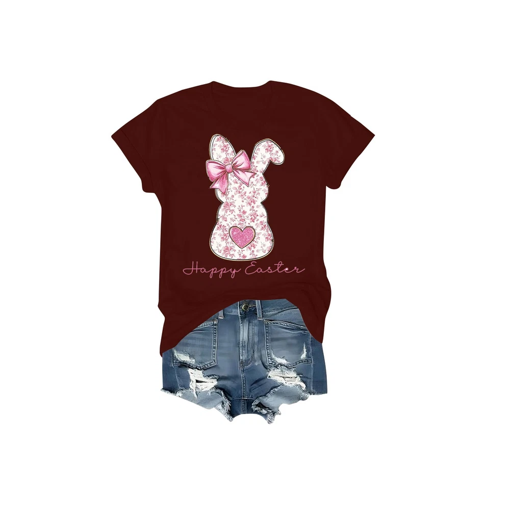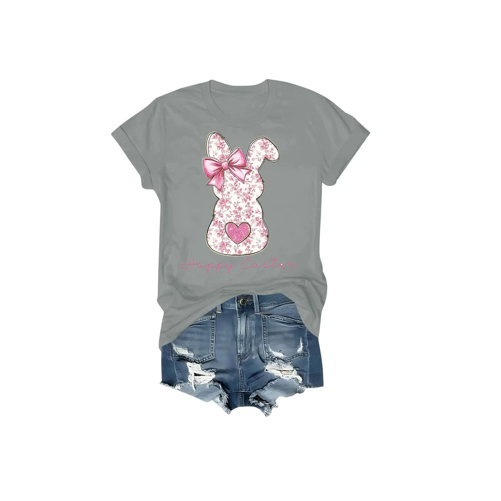 Women's Daily Holiday Printed Short Sleeve Easter Short Sleeve Round Neck Retro