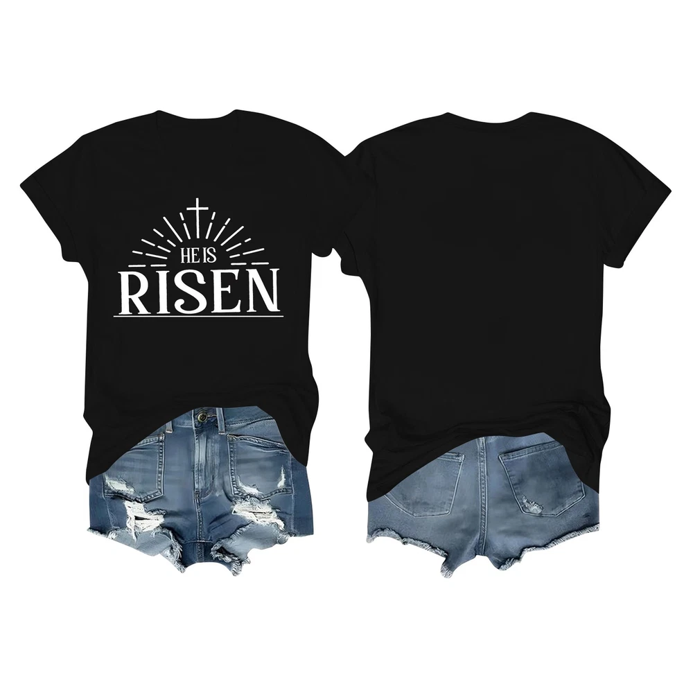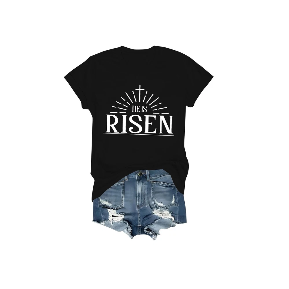 Women's Daily Holiday Printed Short Sleeve Easter Short Sleeve Round Neck Retro Short Sleeve Summer Casual Tops Features : Polyester,Spandex Women's Fashion Short Sleeve Tunics Casual Tops Summer Short Sleeve T Shirt For Women Suitable for summer,leisure, travel, daily life, party, club anywhere It's so easy to pair it with jeans, shorts, or jeg gings for a stylish look this season! Product information: Season:Autumn/Spring/Winter/Summer Gender:Womens Occasion:Daily Style:Casual,Fashion Fit:Fits ture to size Thickness:Standard How to wash:Hand wash Cold,Hang or Line Dry What you get:1 PC Women Tops Size Bust Shoulder Sleeve Length S 96cm/37.80'' 40cm/15.75'' 18cm/7.09'' 67cm/26.38'' M 102cm/40.16'' 41.5cm/16.34'' 19cm/7.48'' 68cm/26.77'' L 108cm/42.52'' 43cm/16.93'' 20cm/7.87'' 69cm/27.17'' XL 114cm/44.88'' 45cm/17.72'' 21cm/8.27'' 71cm/27.95'' XXL 122cm/48.03'' 47cm/18.50'' 22cm/8.66'' 73cm/28.74'' XXXL 130cm/51.18'' 49cm/19.29'' 23cm/9.06'' 75cm/29.53'' Size:S Bust:96cm/37.80'' Shoulder:40cm/15.75'' Sleeve:18cm/7.09'' Length:67cm/26.38'' Size:M Bust:102cm/40.16'' Shoulder:41.5cm/16.34'' Sleeve:19cm/7.48'' Length:68cm/26.77'' Size:L Bust:108cm/42.52'' Shoulder:43cm/16.93'' Sleeve:20cm/7.87'' Length:69cm/27.17'' Size:XL Bust:114cm/44.88'' Shoulder:45cm/17.72'' Sleeve:21cm/8.27'' Length:71cm/27.95'' Size:XXL Bust:122cm/48.03'' Shoulder:47cm/18.50'' Sleeve:22cm/8.66'' Length:73cm/28.74'' Size:XXXL Bust:130cm/51.18'' Shoulder:49cm/19.29'' Sleeve:23cm/9.06'' Length:75cm/29.53''