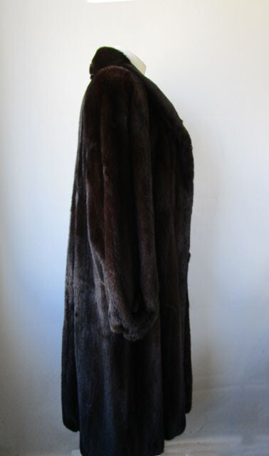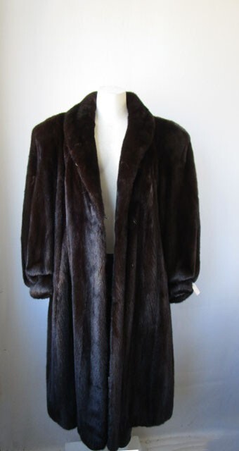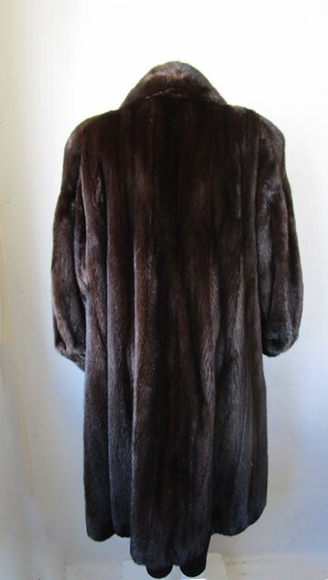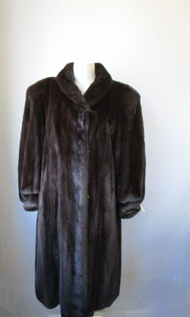 I tem Description: S uperbly soft and luxurious Canadian mink fur coat for women. Full top quality Canadian mink fur pelts, warm and cozy shawl style mink fur collar, front furrier closures , side slit pockets and satin lining complete the look of the this beautiful fur coat. Fur and lining in MINT PLUS condition. Cleaned and glazed. SIZE: 10/12 Chest all around closed 46" SLEEVES: 29" Adjustments Free of Charge! LENGTH: 43"