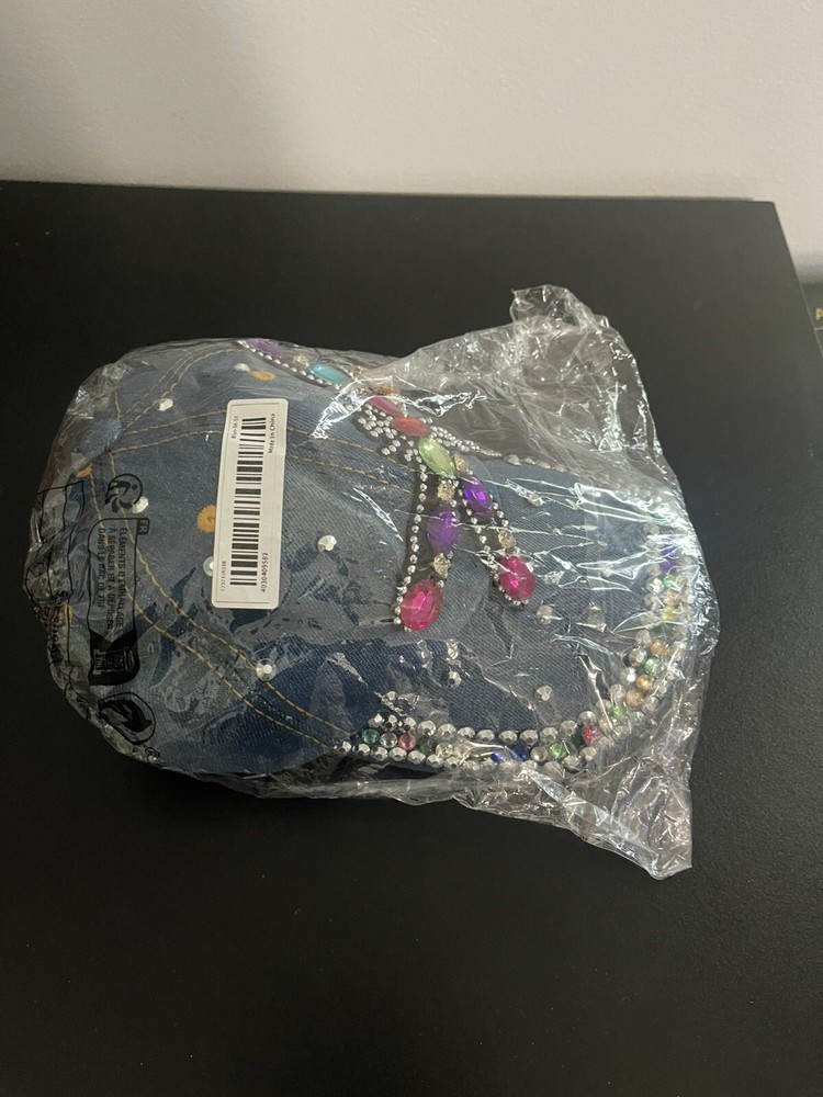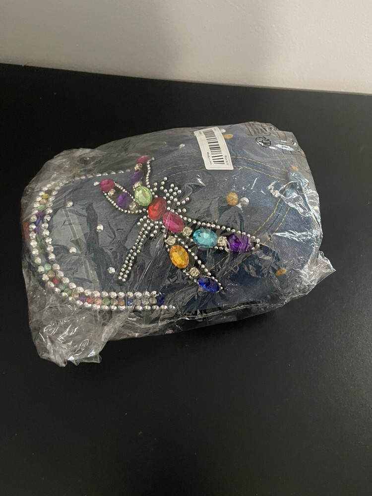 Women's Denim Baseball Hat Rhinestone Studded Dragonfly Distressed Bling Cap. Please look at the pictures for details. Feel free to ask any questions, or make an offer. Thank you.