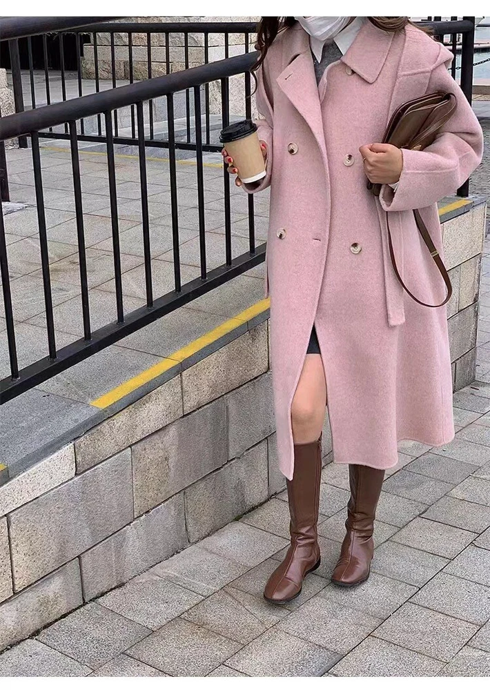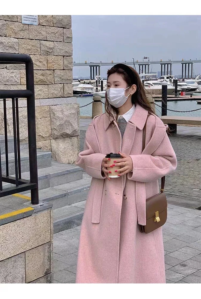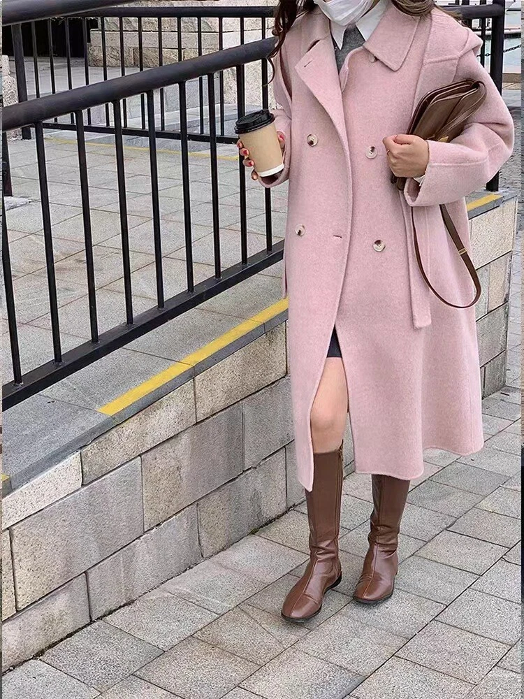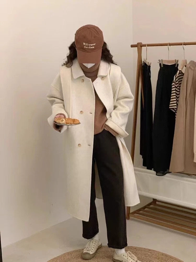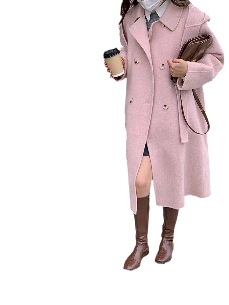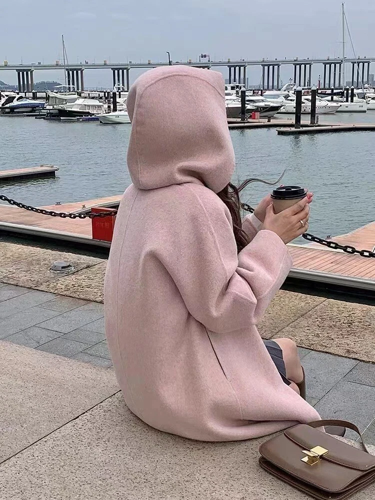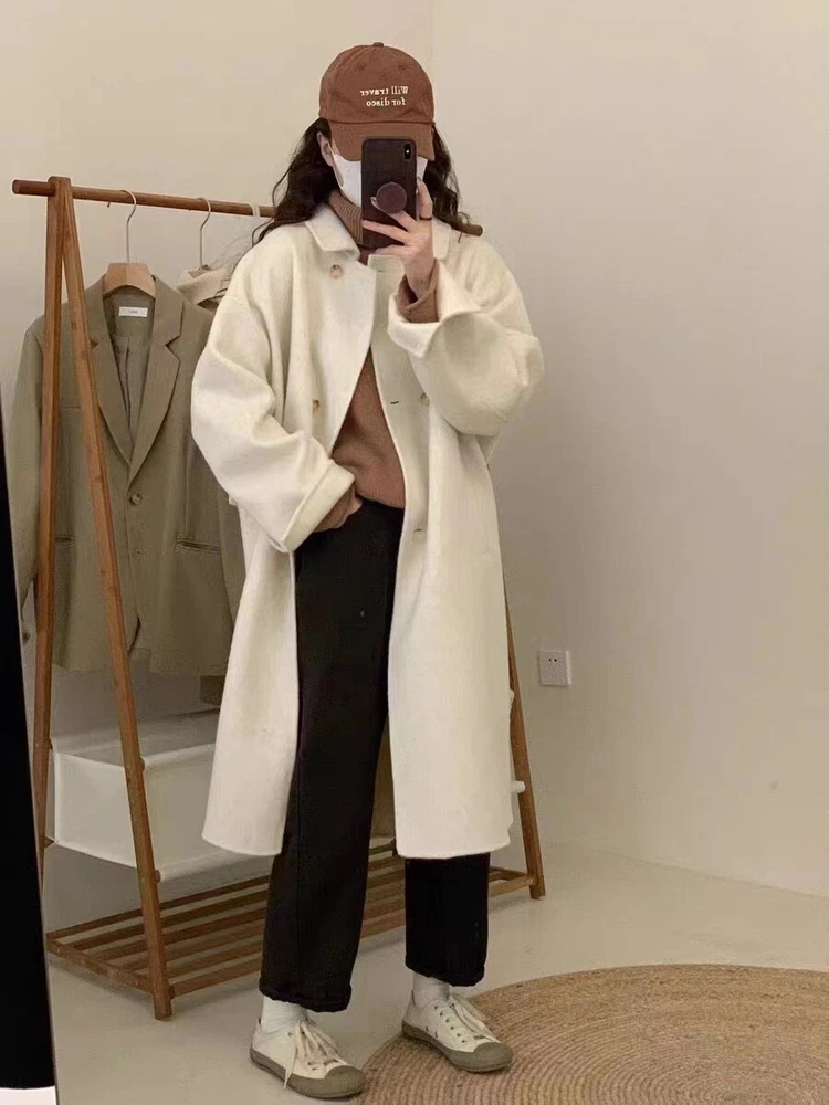 Women Mid-Length Loose Tweed Coat 52% Wool Double-Faced Outerwear