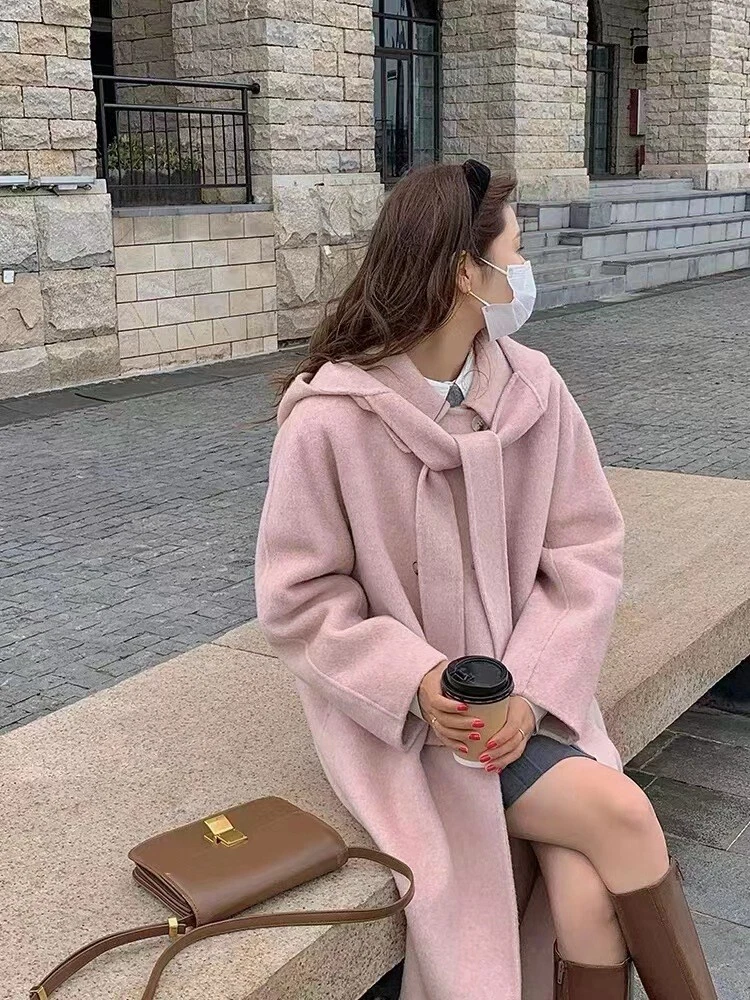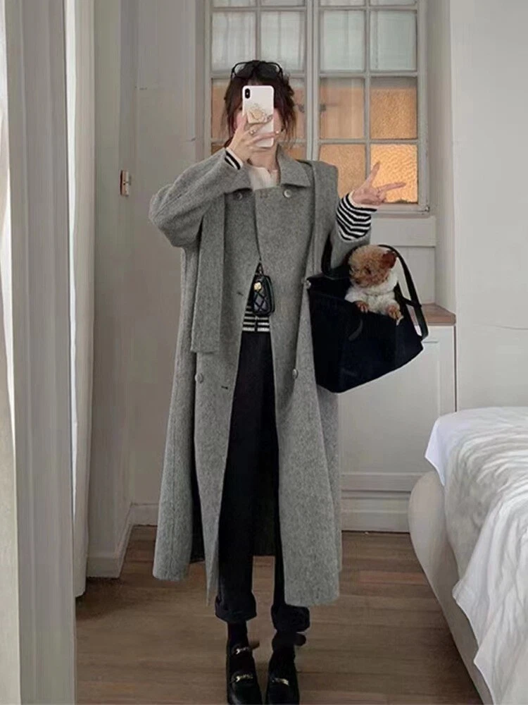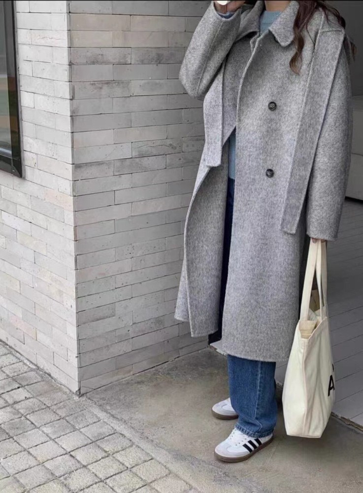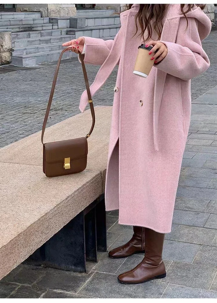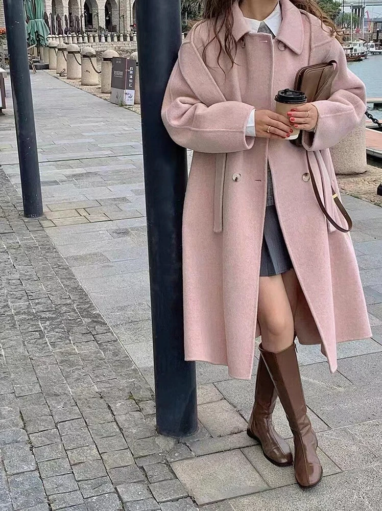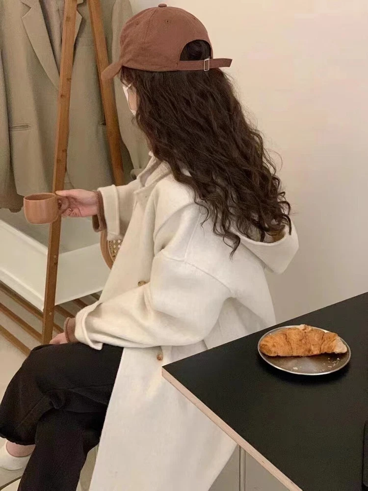 Women Mid-Length Loose Tweed Coat 52% Wool Double-Faced Outerwear