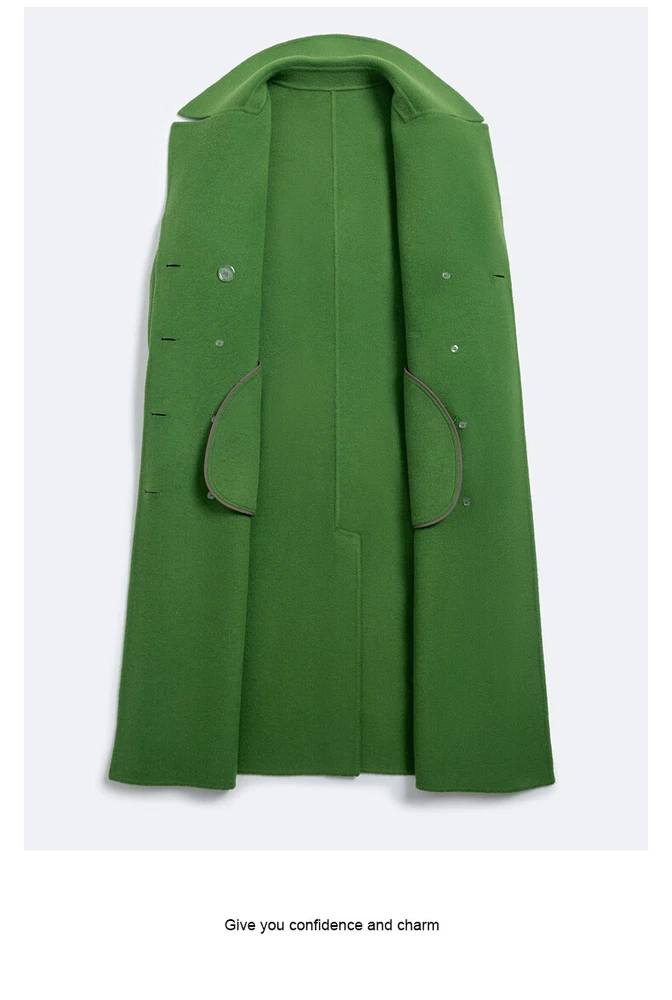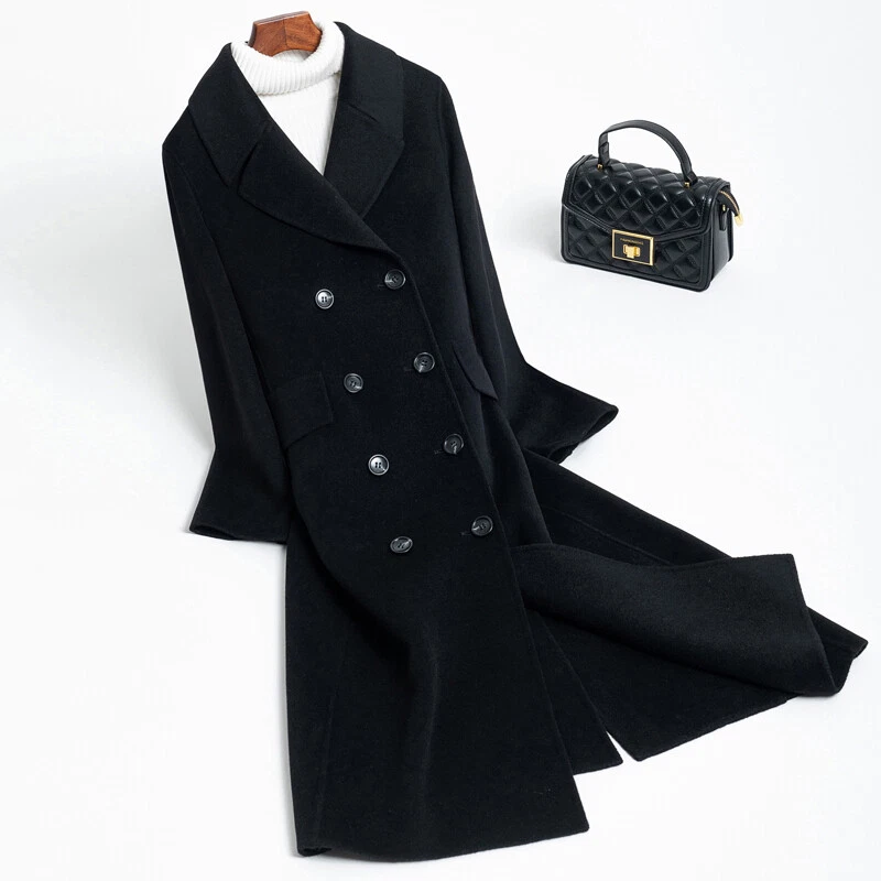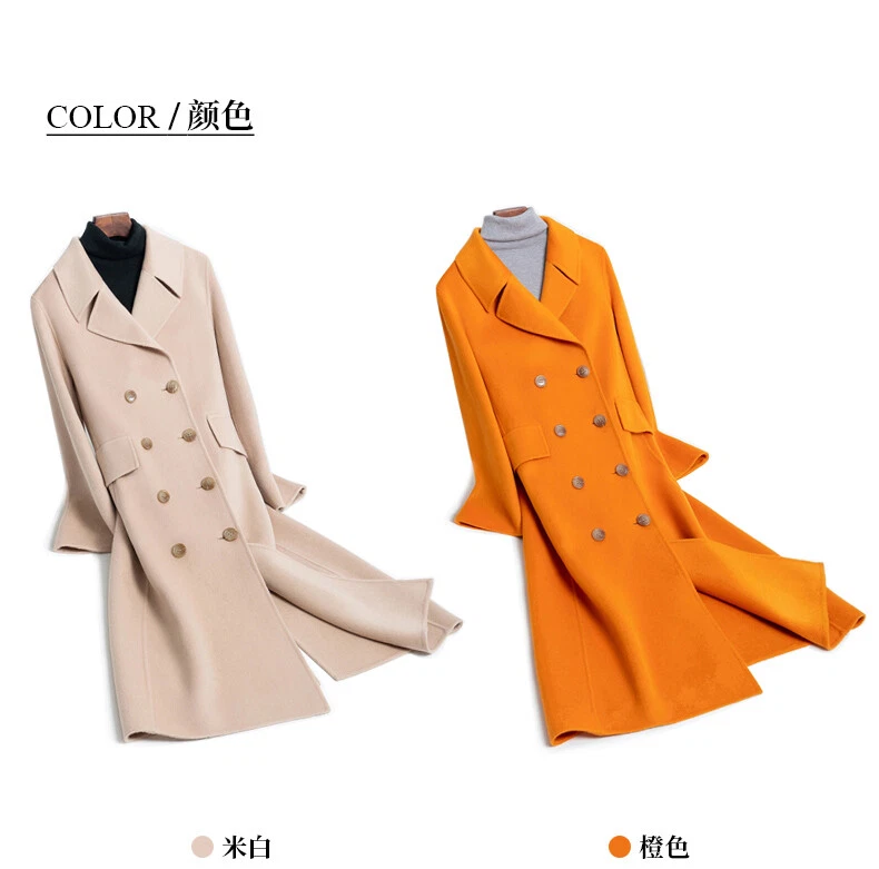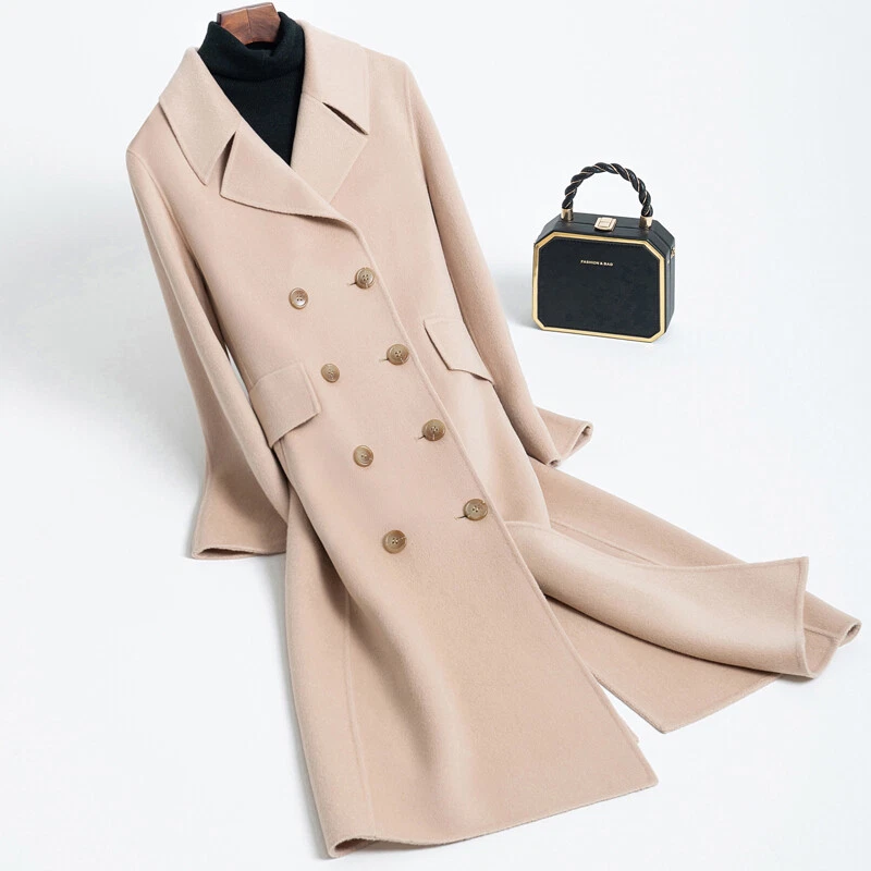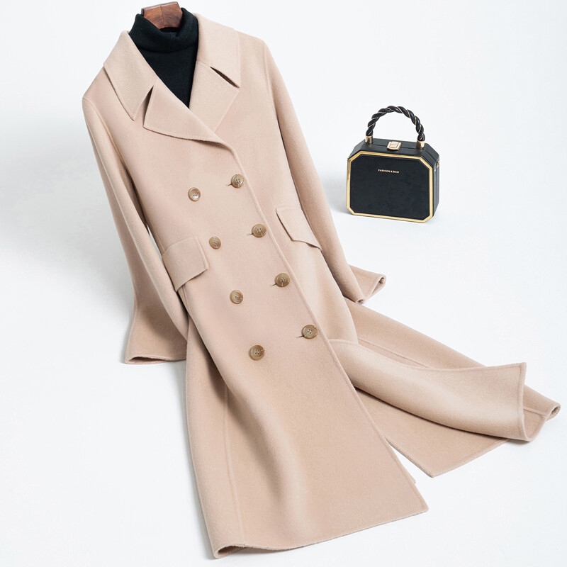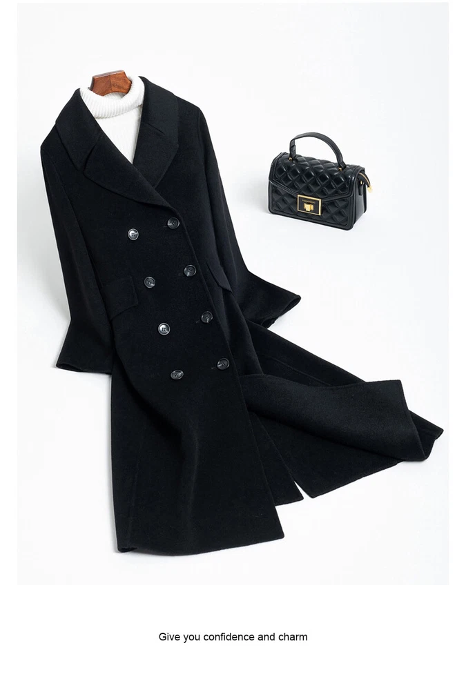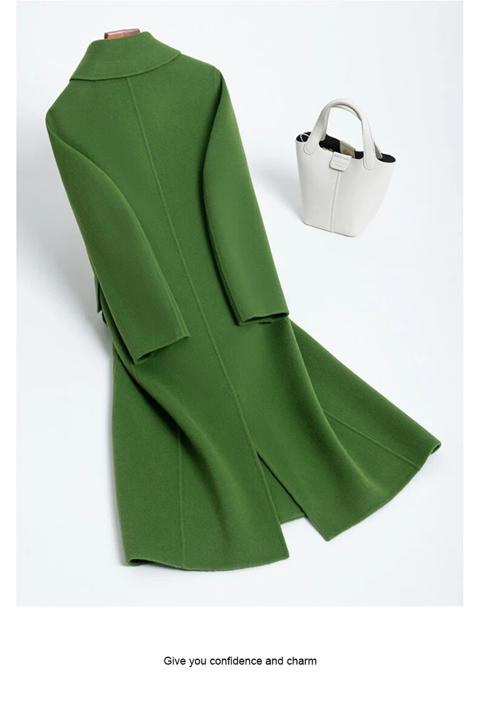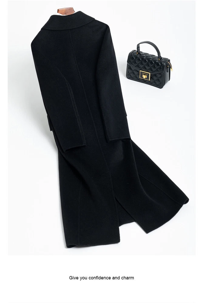 Women's Double-Sided 100% Wool Long Trench Coat Overcoat Korean Style