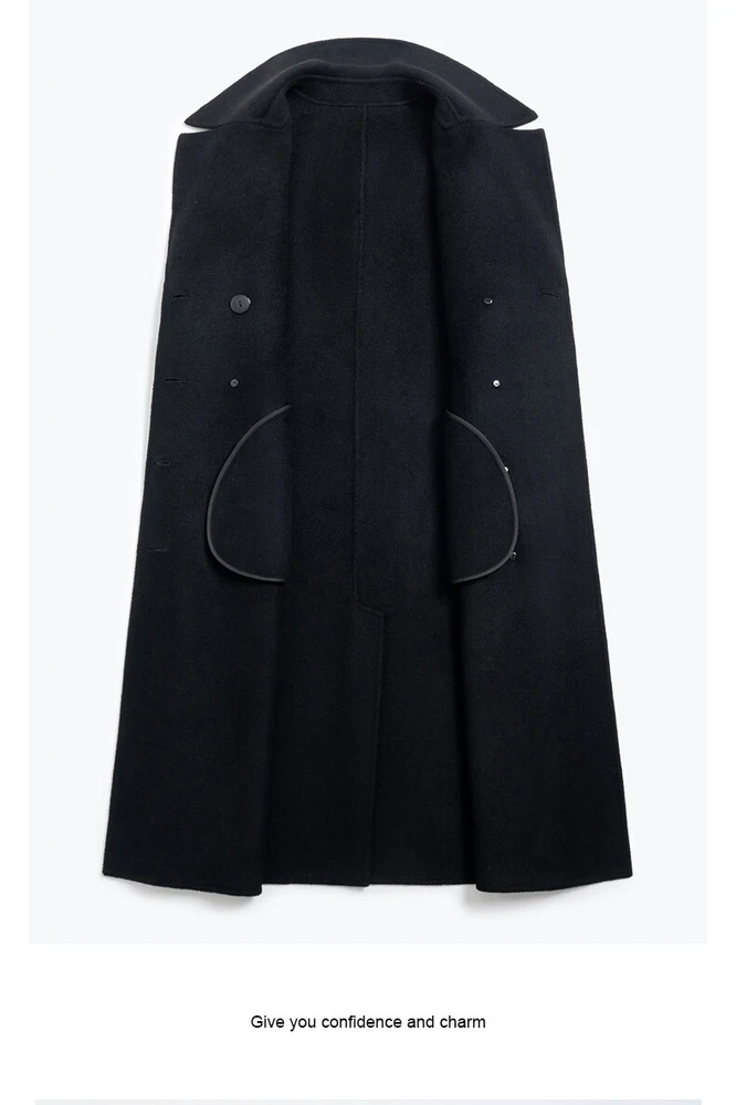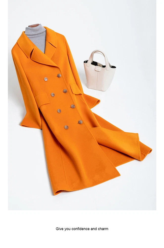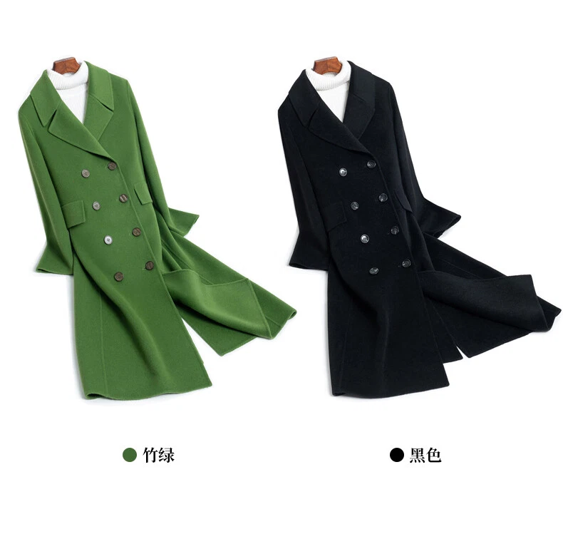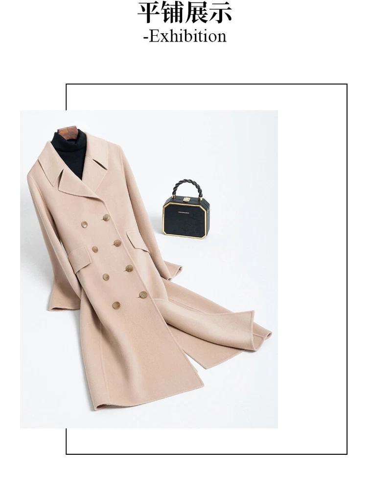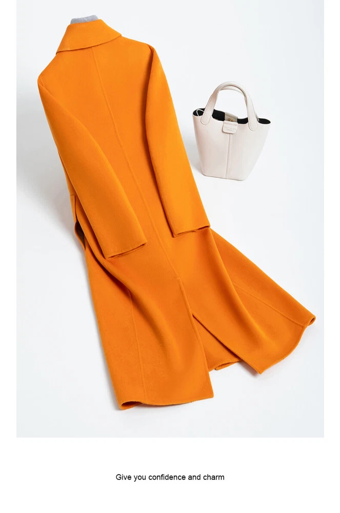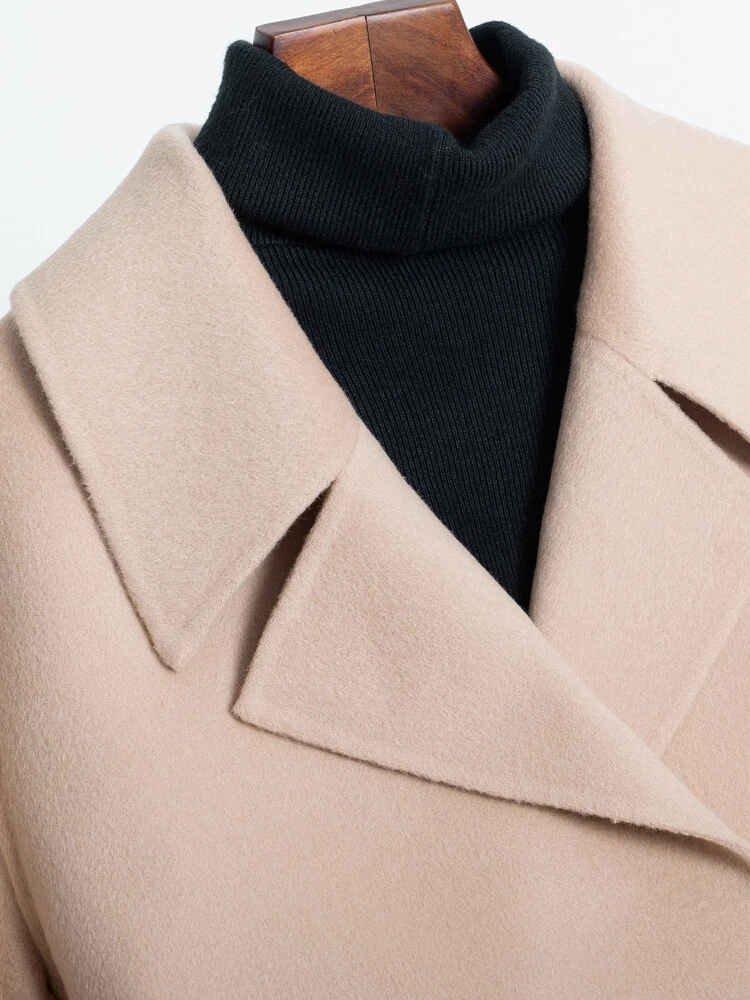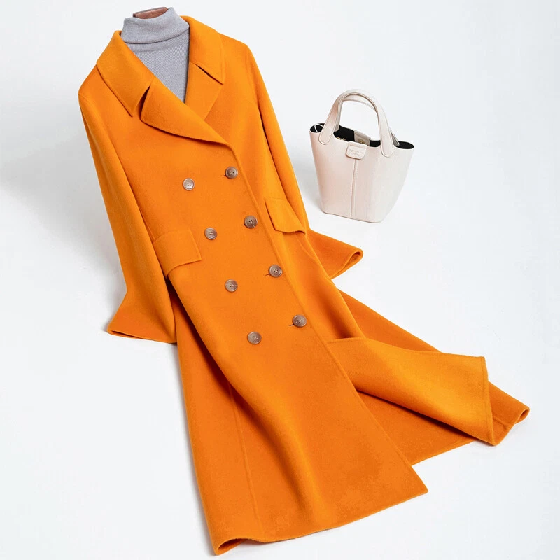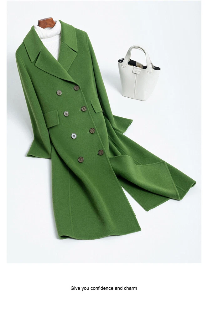 Women's Double-Sided 100% Wool Long Trench Coat Overcoat Korean Style