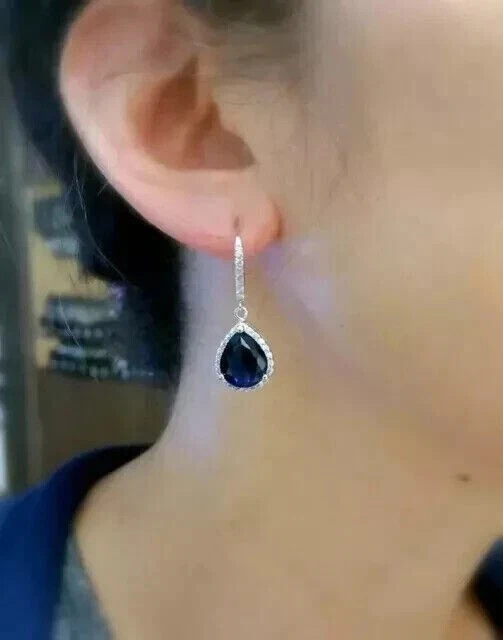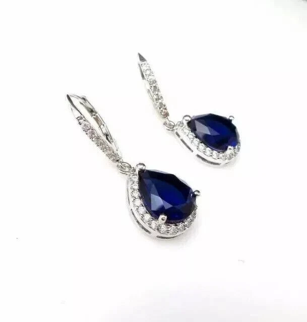 Women's Drop Dangle Earrings 2Ct Pear Simulated Sapphire 14k White Gold Plated