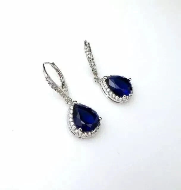 Main Stone Creation: Simulated Ear Area: Lobe Country/Region of Manufacture: India Material: Metal, Gemstone gtin13: Does Not Apply Style: Dangle/Drop Base Metal: White Gold Plated Main Stone Shape: Pear Occasion: Anniversary, Birthday, Christening, Christmas, Confirmation/Communion, Engagement, Graduation, Mother's Day, Valentine's Day, Wedding Metal: Sterling Silver Main Stone: Simulated Sapphire MPN: NA Brand: sp_jewels Metal Purity: 925 Shape: Teardrop Seller Warranty: Yes Personalize: No Main Stone Treatment: Not Enhanced Color: White Number of Gemstones: 02 Cut Grade: Excellent Theme: Beauty Customized: Yes UPC: Does Not Apply Gemstone Clarity Grade: Slightly Included Era: Undated Features: Engraved Setting Style: Prong Signed: No Type: Earrings Country of Origin: Unknown Wholesale: Yes Secondary Stone: Simulated Diamond Vintage: No Main Stone Color: Blue Antique: No Handmade: Yes Closure: Leverback