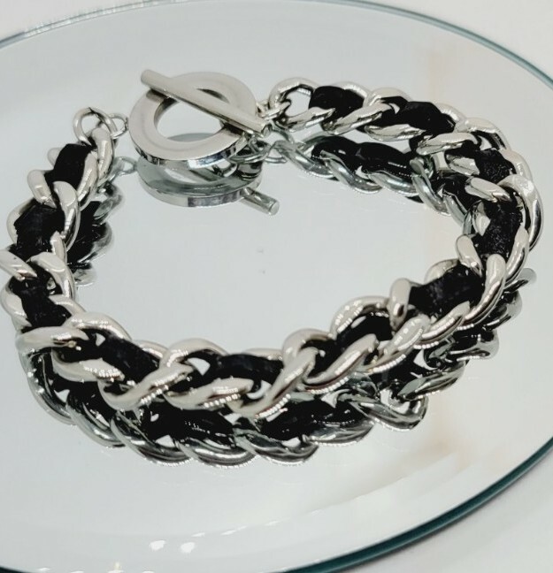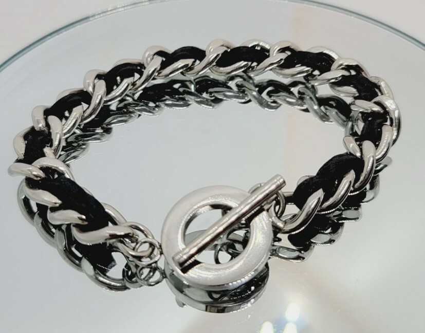 Women’s EDFORCE 8.75" Braided Leather & Stainless Steel Toggle Rocker Bracelet