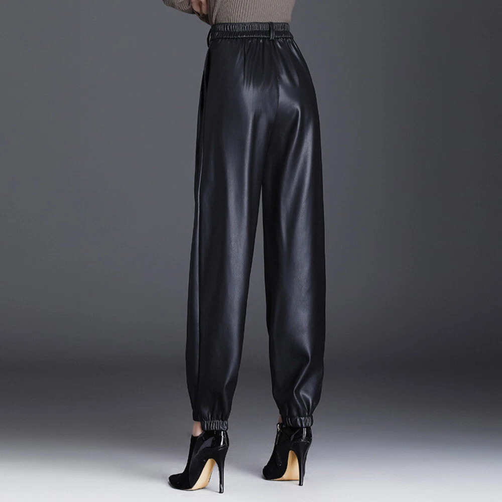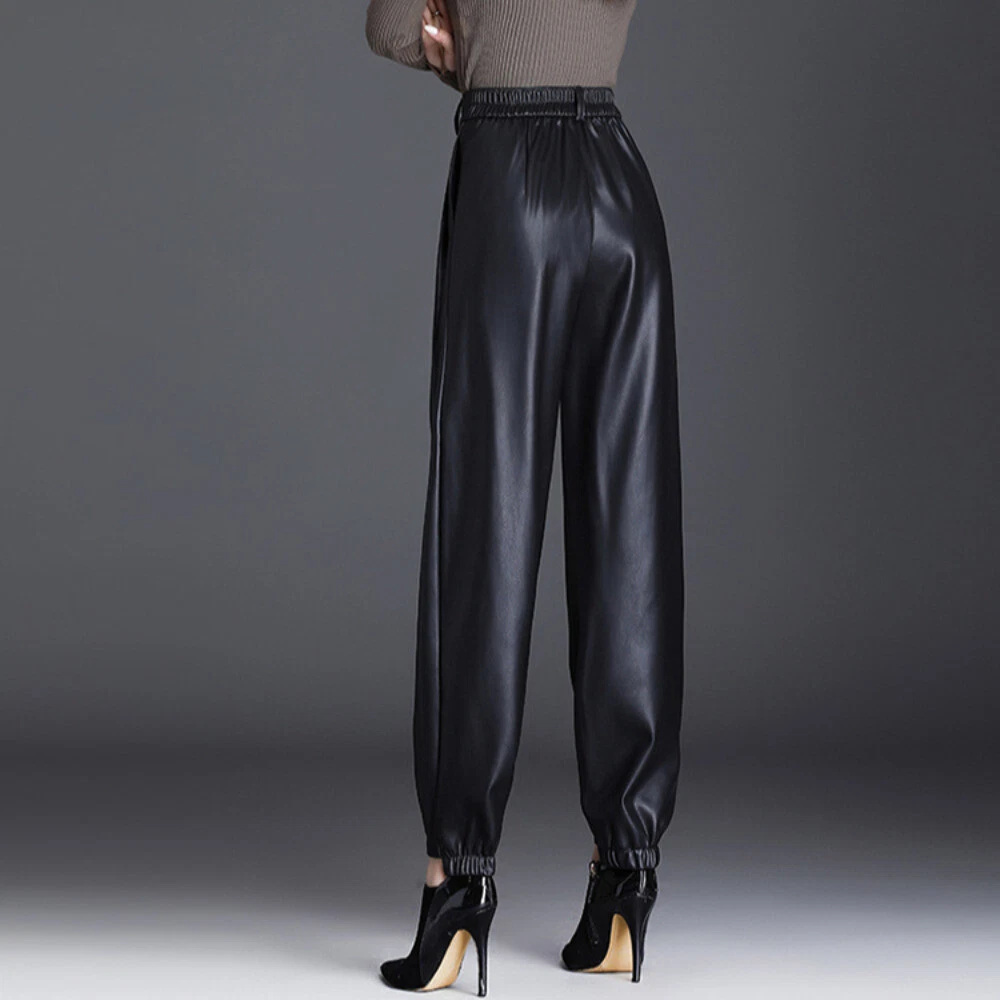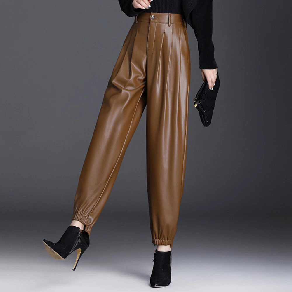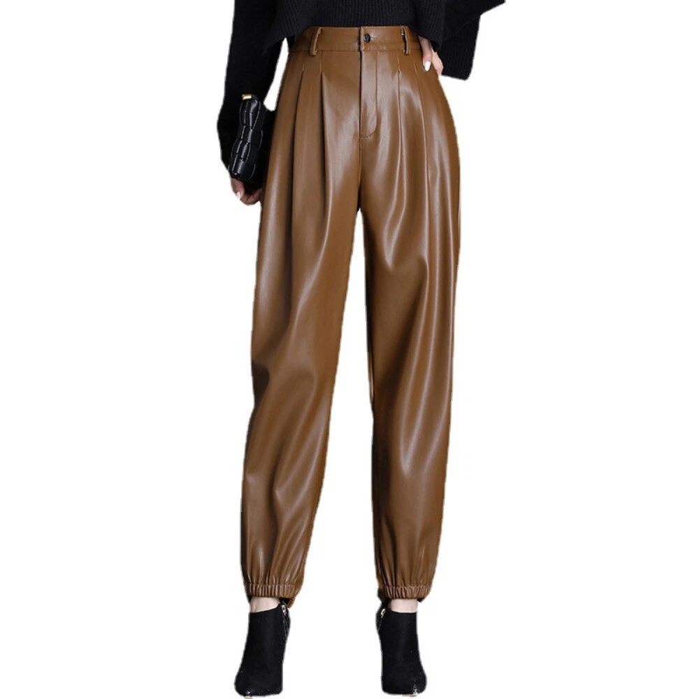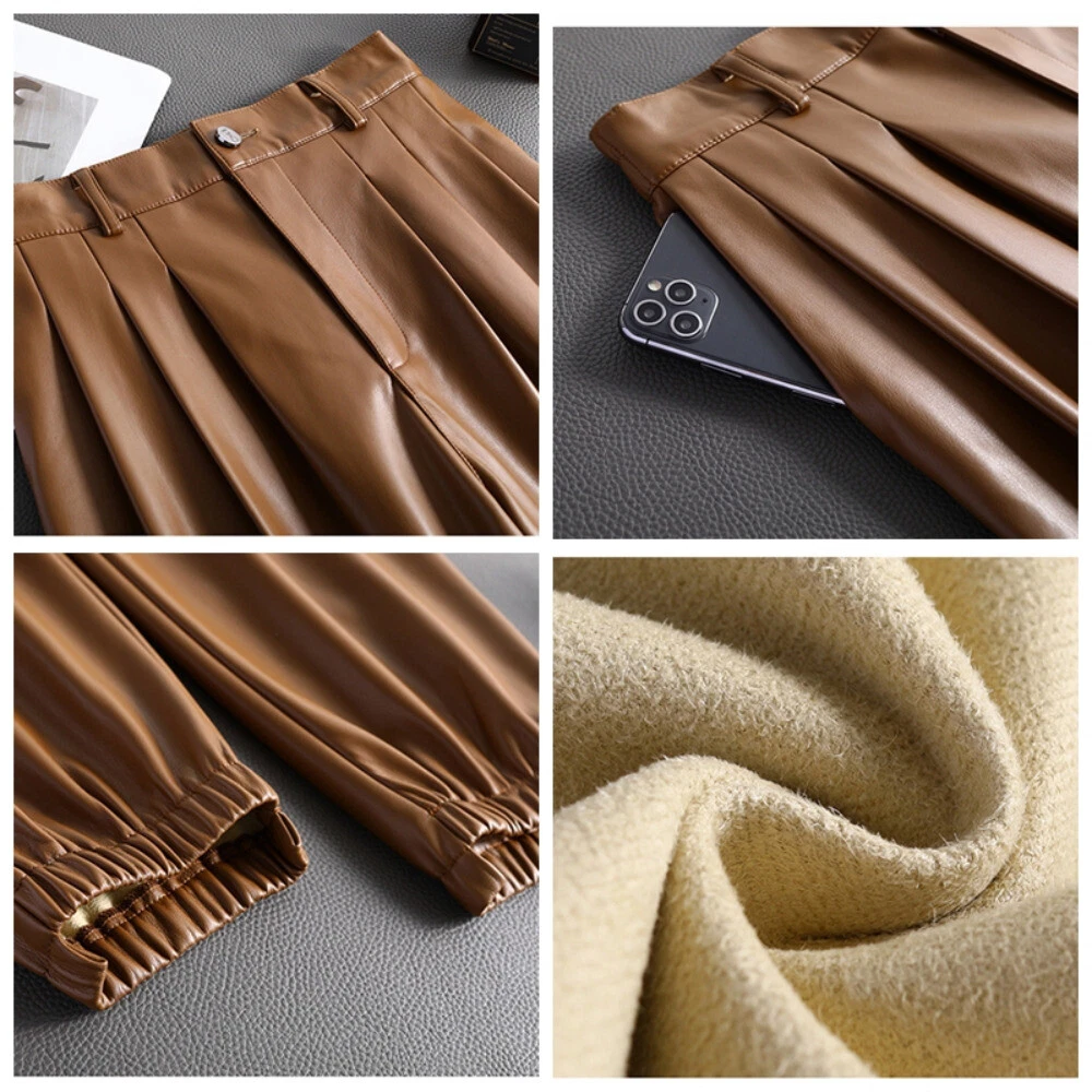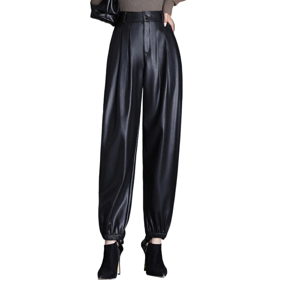 Please note this is in Asian sizing, smaller than western size e.g. UK, US, AU. Please check the measurements carefully before making a purchase. Please allow 1 inch discrepancy due to different measurement method. If you are not sure which size to buy, please provide height and weight, we will recommend a suitable size. Photos may slightly different from actual item\\'s color due to the lighting during photo shooting or the monitor\\'s display. Due to manual measurement, it allows 1 inch discrepancy. This item is for a pair of pants only and excludes all the accessories. Women Faux Leather Pants Tapered Trousers Frill Pleated Fleece-lined Long Pants Material: polyester Size: M, length 98/38.6, waist 66/26.0, hip 108/42.5 (cm/in) L, length 98/38.6, waist 70/27.6, hip 112/44.1 (cm/in) XL, length 99/39.0, waist 74/29.1, hip 114/44.9 (cm/in) 2XL, length 99/39.0, waist 76/29.9, hip 118/46.5 (cm/in) 3XL, length 100/39.4, waist 80/31.5, hip 121/47.6 (cm/in) 4XL, length 100/39.4, waist 84/33.1, hip 124/48.8 (cm/in) SKU: 914-E076/JYY