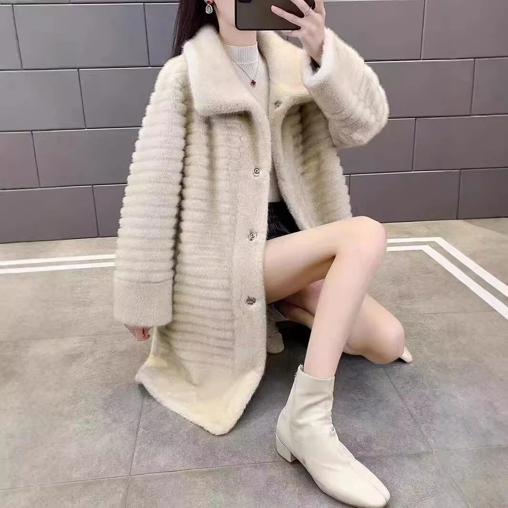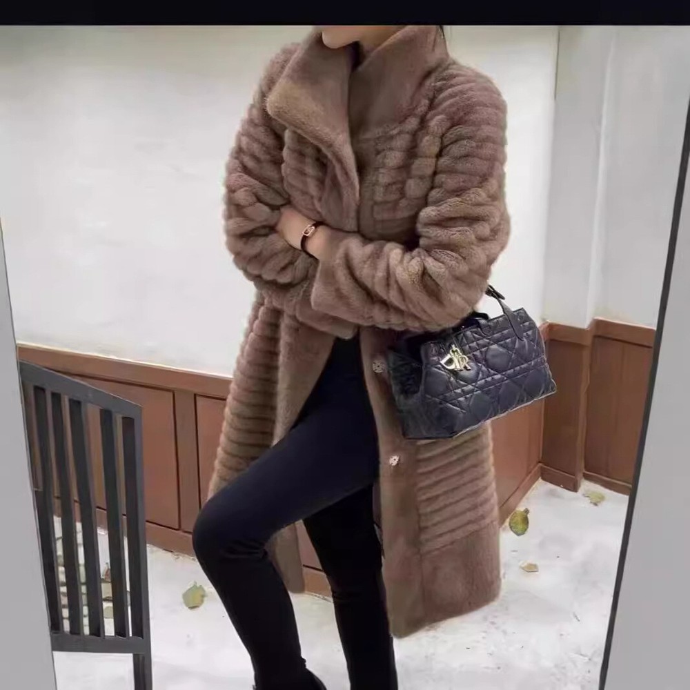 Women's Faux Mink Fur Long Winter Coat for Mothers
