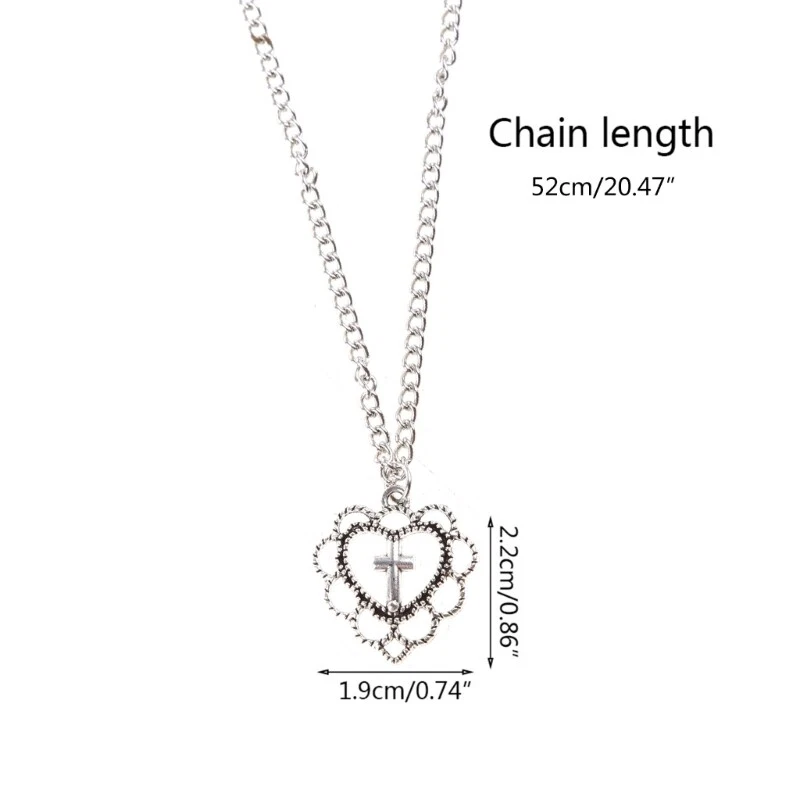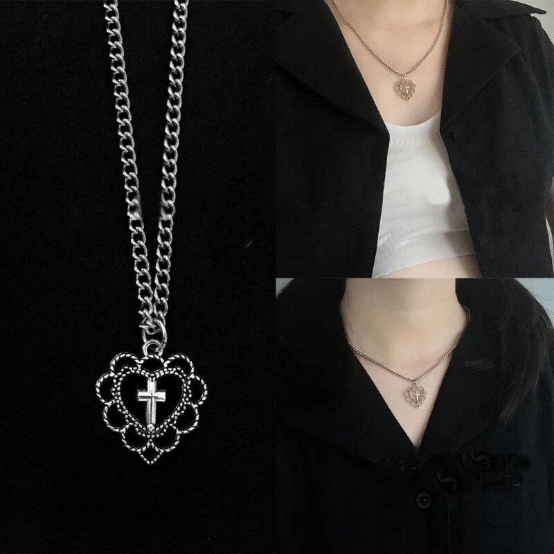 Womens Filigree Heart Pendant Necklace with for Cross Charm Gothic Punk