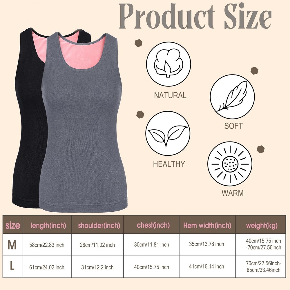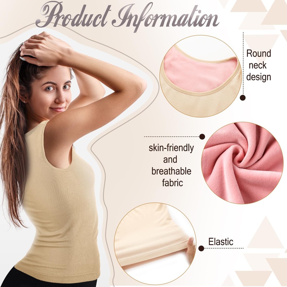 Features: Thoughtful gift choice: You can give the fleece lined thermal top to your girlfriend, wife, mother, daughter, and other female friends, as a birthday gift, they will be delighted to receive such a considerate present, expressing your care and love. Easy to match: The cotton thermal underwear for women is suitable as a base layer during indoor or outdoor activities, such as winter skiing and spring hiking, easy to match your different types of clothes, classic and tasteful. Specifications: Material: cotton and spandex material with fleece inside Color: as the pictures shown Size: medium Package includes: 4 x Cotton thermal underwear for women Notes: Manual measurement, please allow slight errors on size. The color may exist a slight difference due to different screen displays. Please check the size information before purchasing. What Can You Get: the package comes with 4 pieces of warm tank tops for women, designed in mixed colors, enough to meet your daily use and demands, you can also share with your friend Soft and Reliable: the women's thermal underwear is made of cotton and spandex material with fleece inside, warm and comfortable, lightweight and breathable, can serve you for a long time Size Fits Most: the women thermal top is designed in medium size, suitable for women with a weight of about 40-70 kg, with nice elasticity, bringing you a comfortable wearing experience; Please check the size information before purchasing Practical Design: the thermal undershirt for women features a round neck, easy for you to pull on and take off; Designed with sleeveless, release your arms from being binding and allow freedom for your movement Warm Notes: the warm under clothes for women can be washed by hand or washing machine, easy to clean and care; Ideal for different occasions, sleeping, working outside, or for a winter trip, providing you with warmth and comfort