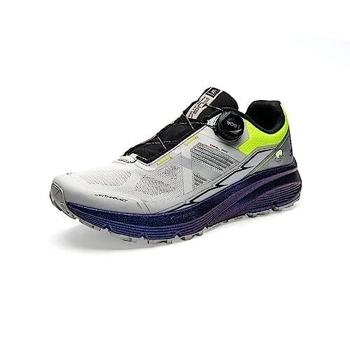 Powerful Grip: FUGA EX BOA mens trail runing shoes Vibram Megagrip outsole offers unparalleled grip on wet and slippery surfaces, Tyre-like multi-directional triangle lugs—No fear of both uphill and downhill trails Eccevai ultra-light and responsive midsole: Eccevai midsole is 15% lighter than traditional EVA midsole, thicker midsole for sustainable rebound BOA lacing system allows one-handed operation, fast adjustment and easy on/off The sandproof and breathable lining helps to reduce debris entering the all-terrain running shoes. FUGA EX BOAwomen's trail running shoes are suitable for all kinds of paved surfaces, great for daily commuting, walking, trail running, running training, sports and fitness, outdoor work