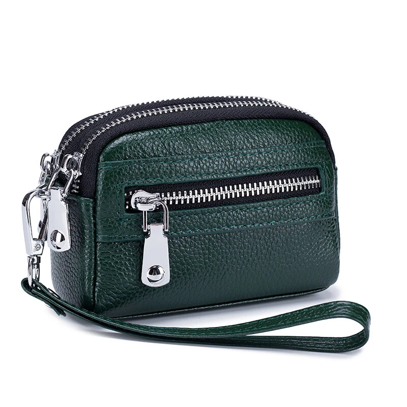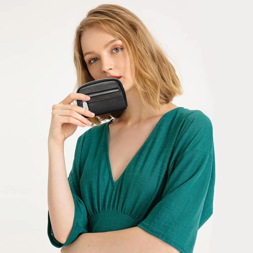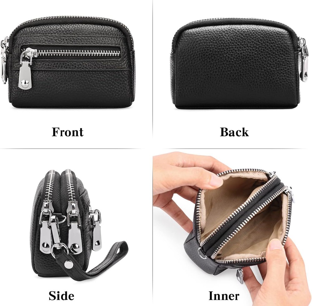 Women's Genuine Leather Wristlet Coin Purse with Double Zip Closure
