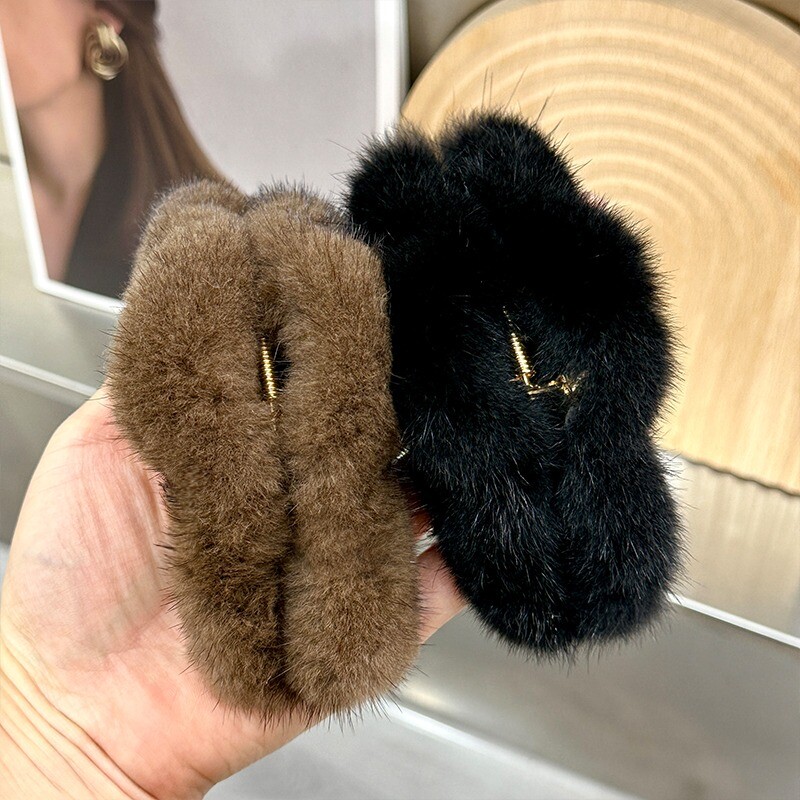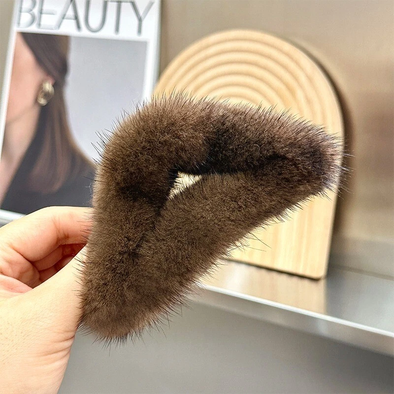 Women's Real Mink Fur Hair Clip for Bangs Bobby Pin Headwear