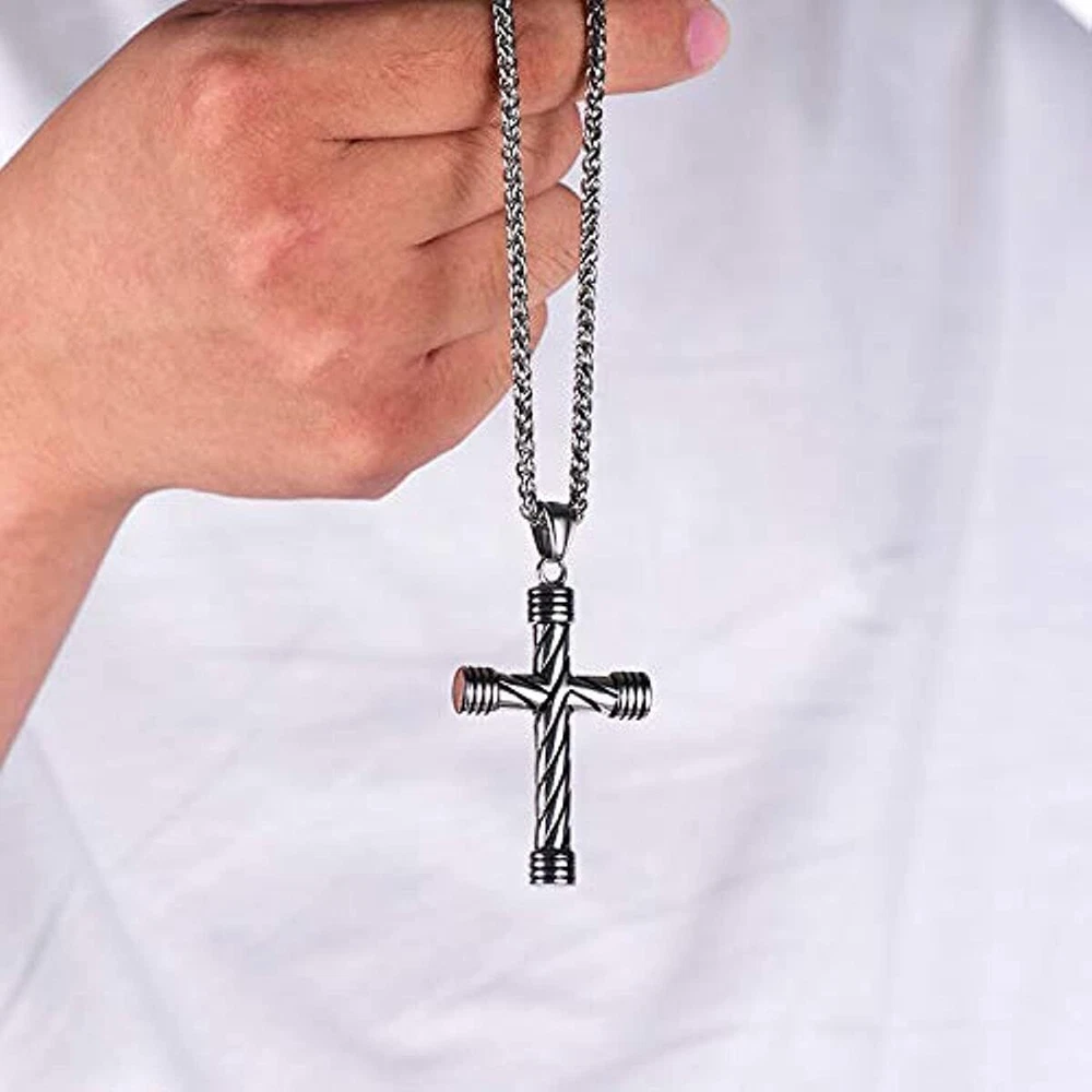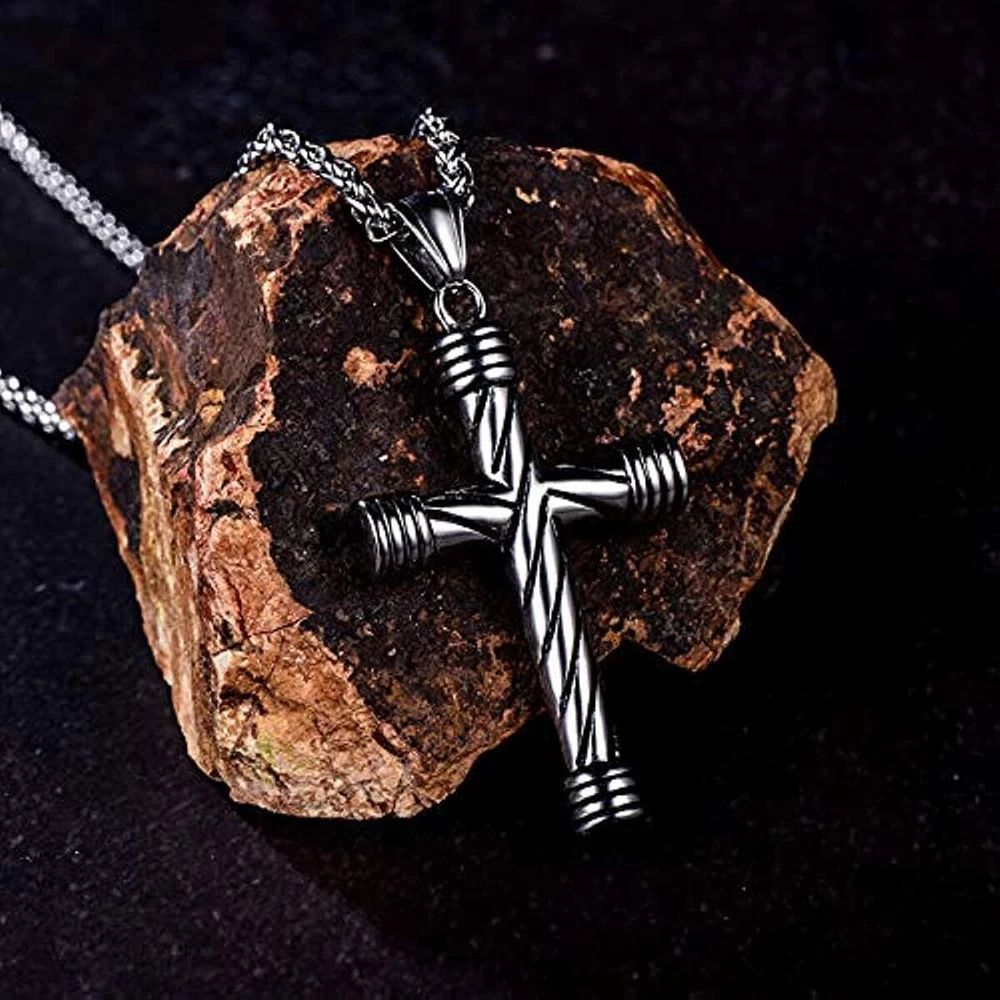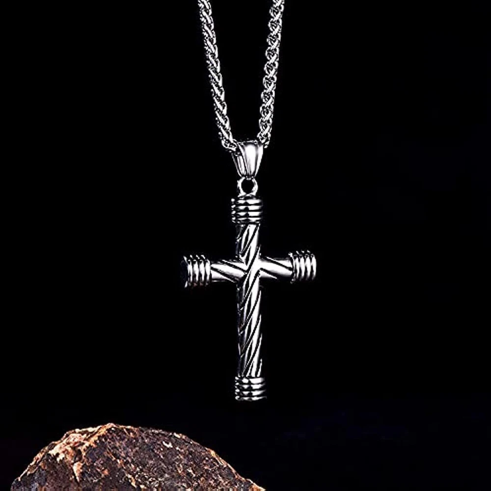 Womens Goth Stainless Steel Christian Cross Pendant Necklace Mens Chain Jewelry