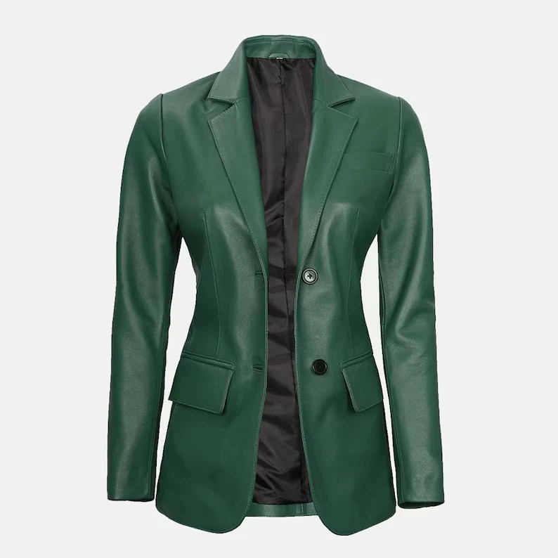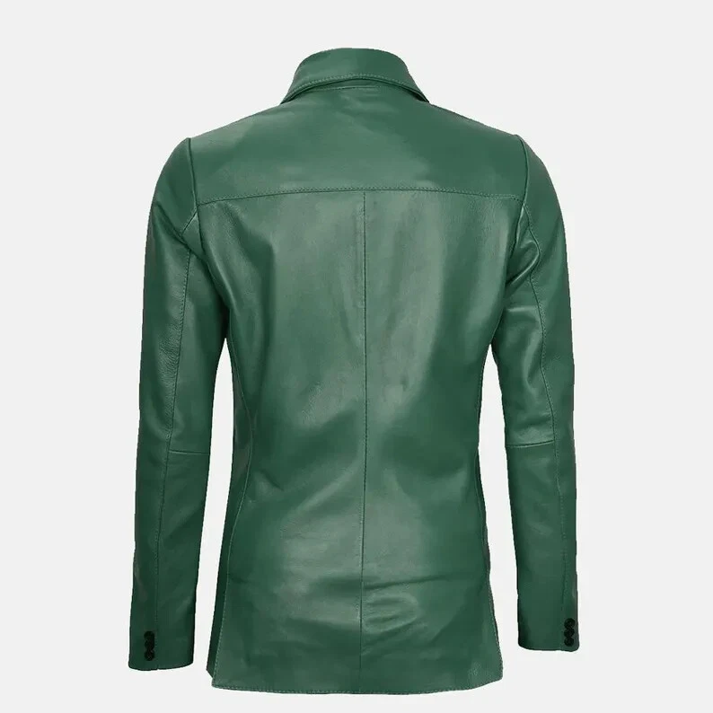 Women's Green Lambskin Leather Jacket Casual Blazer Two Button Designer Coat