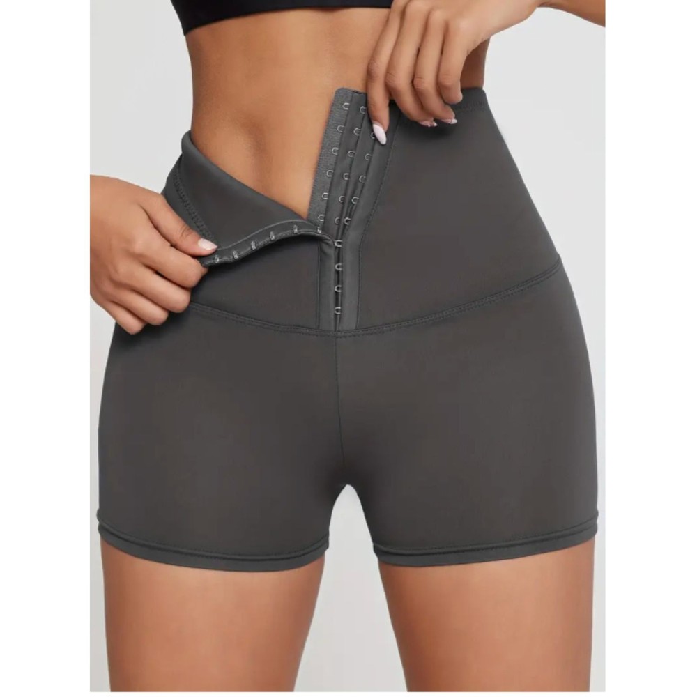 Women's High-Waist Black Shorts with Front Buckle - Casual, Stretchy Polyester Blend, Mid-Thigh Length, Machine Washable - Perfect for Spring/Summer/Fall Size: Large Never worn, like new condition. Please see all photos