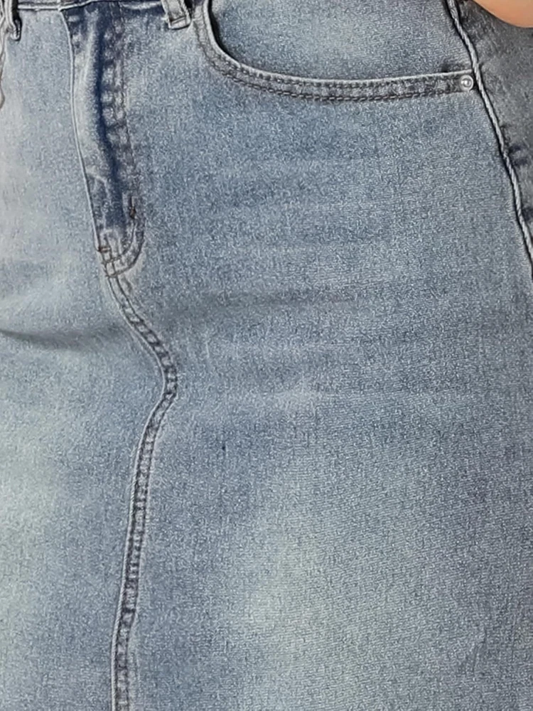 Love this jean skirt! The high waist and back slit give it a flattering fit, and the stretchy denim is so comfortable. Perfect for dressing up or down—works with sneakers or heels. The knee-length cut is just right, leaning slightly midi. Great quality, true to size, and pairs well with any top! A must-have for any wardrobe.