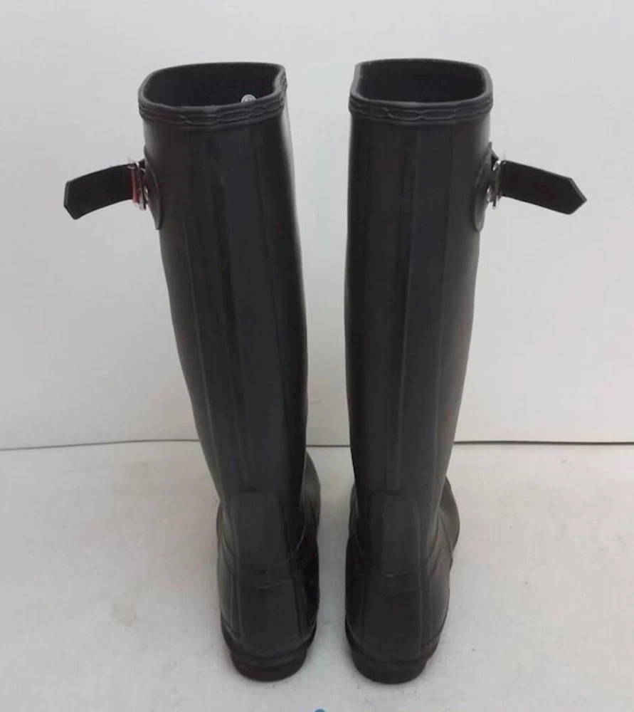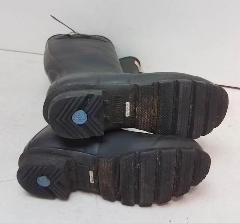 Crafted for both elegance and durability, these Women's Hunter Equestrian Black Rubber Boots are a staple for any fashion-forward wardrobe. Size 6, they wrap your feet in a sleek black rubber that effortlessly combats the elements while maintaining a chic aesthetic.The knee-high riding boot style is complemented by a comfortable polyester lining, ensuring your feet stay cozy. Versatile and timeless, these boots are suitable for numerous occasions, from casual outings to more formal equestrian events. A true blend of function and fashion, they are an impeccable choice for those who appreciate both style and practicality.