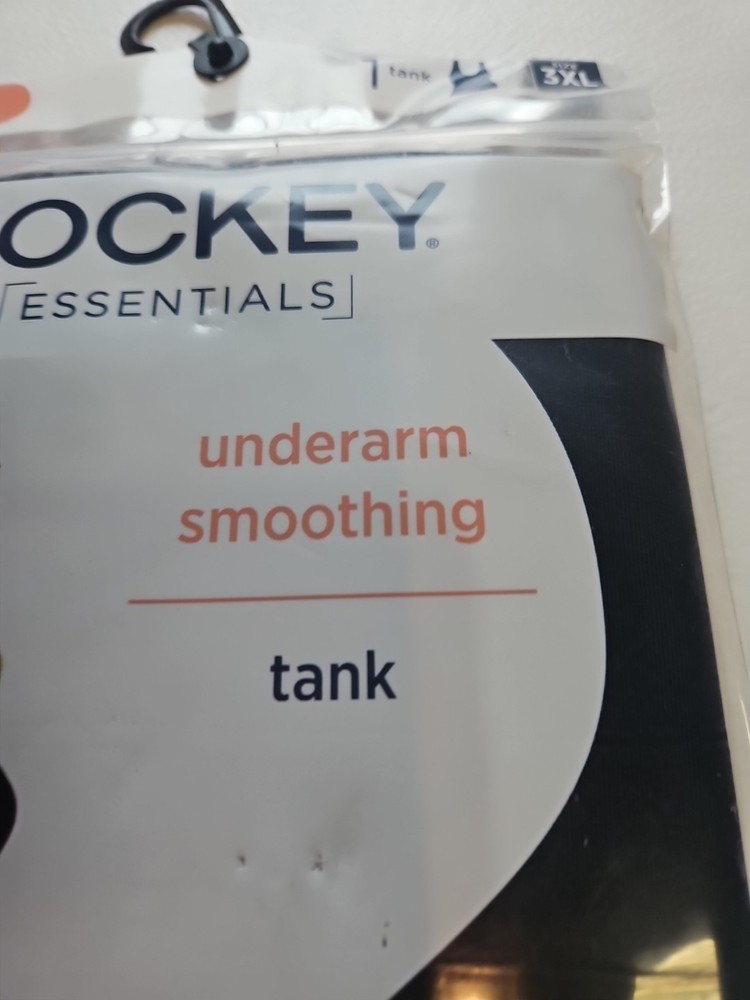 This Jockey Essentials underarm smoothing tank top is a must-have for any woman looking to improve the appearance of their arms. The tank top is made from a blend of polyester and spandex, which makes it both comfortable and effective. It features a solid black color and a size of 3XL, making it suitable for women of all sizes. The garment care is simple, as it is machine washable, making it easy to maintain its quality. The tank top is designed with a light compression level, which helps to slim and cool the underarms, while also wicking away moisture. It is tagless and has an opaque fabric type, making it perfect for wearing underneath any outfit. This shapewear is perfect for use in any setting, whether it's for daily wear or for special occasions. New unopened. Bin 1