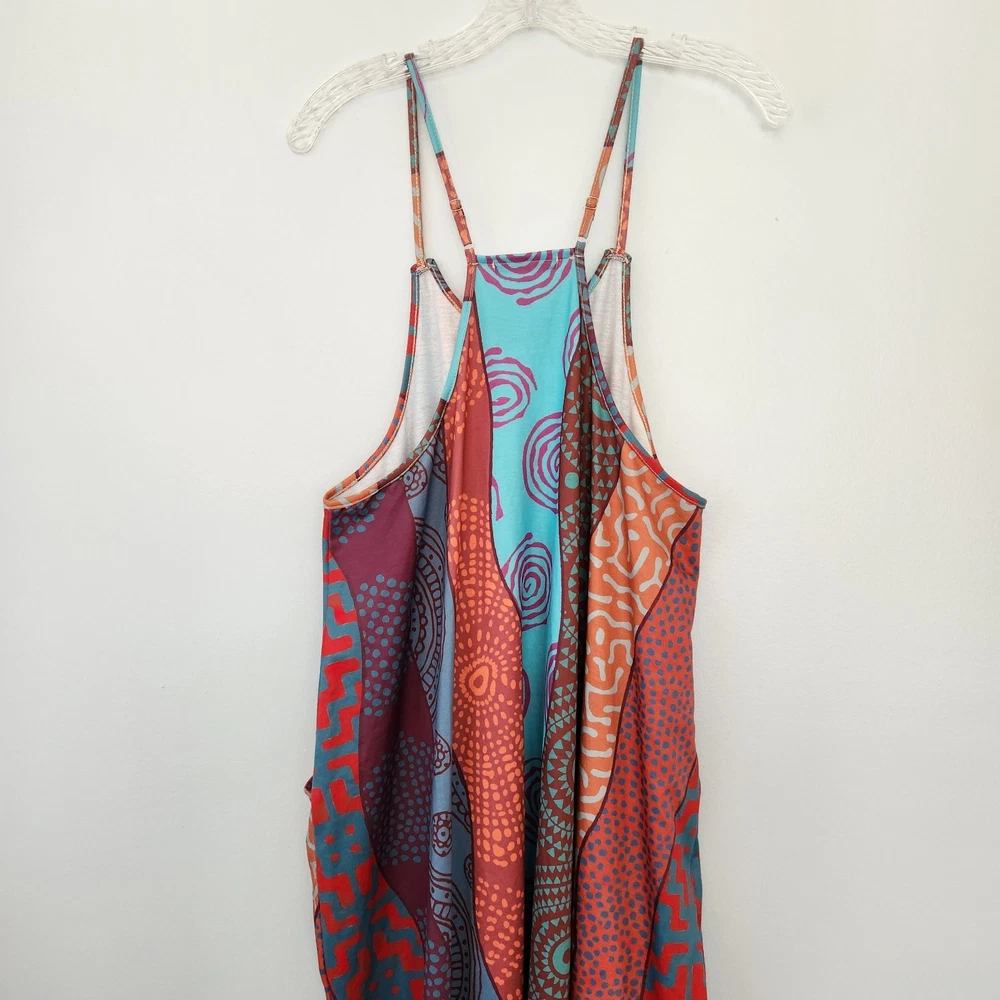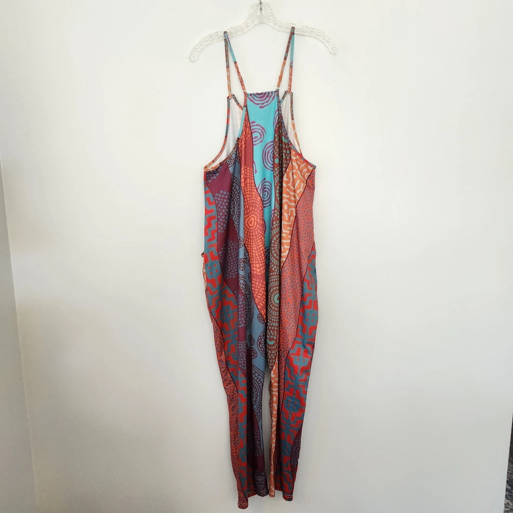 Women's Jumpsuit M Red Abstract Pockets Artsy Colorful Bold Vibrant Slouchy Boho - NEW with Tags - Measurements in Photos - Returns acceptable within 30 days of purchase unworn, with tags attached, in original condition - Check out my E-bay Store. Lots of Amazing Choices Available.