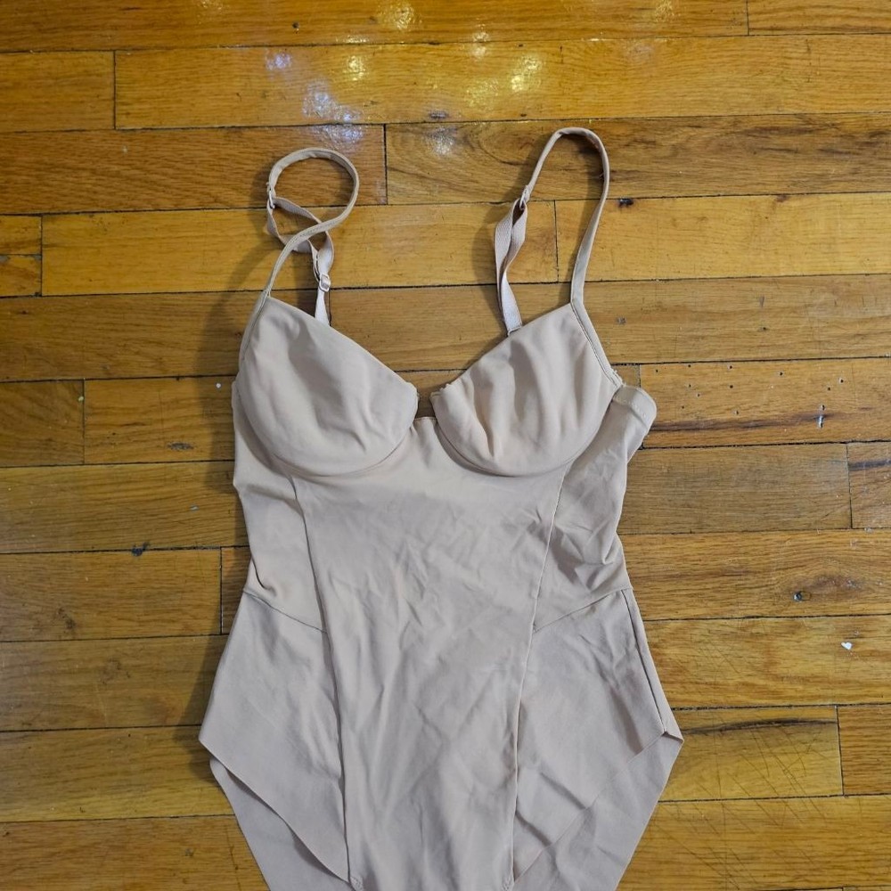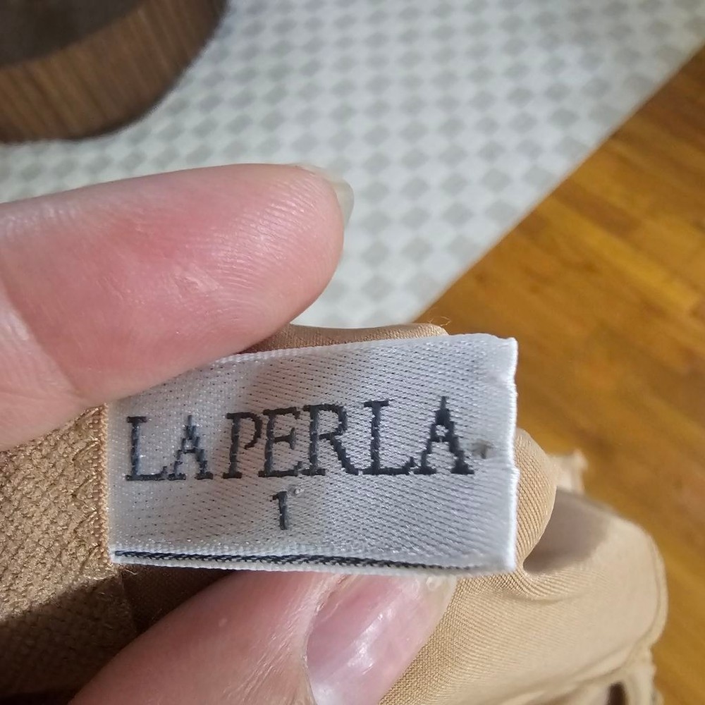 This is a pre-owned La Perla women's shapewear bodysuit in a beige color. The garment features adjustable shoulder straps and a structured, underwired bust. The material composition, visible on the tag, indicates it is 100% Polyamide/Nylon. Sizing information on the tag includes EUR 70, F 80, D 70, E 80, UK 32, and US 32, corresponding to a 32B cup size. The bodysuit shows minor signs of wear consistent with its pre-owned condition. Kindly note: Items are not washed and may have scents (detergent or used clothing). Any stains, rips, or defects are clearly shown in the photos, and actual measurements are included there as well. Orders ship within 1–3 business days. If you have any questions or issues with your order, feel free to message me — I’m happy to help!
