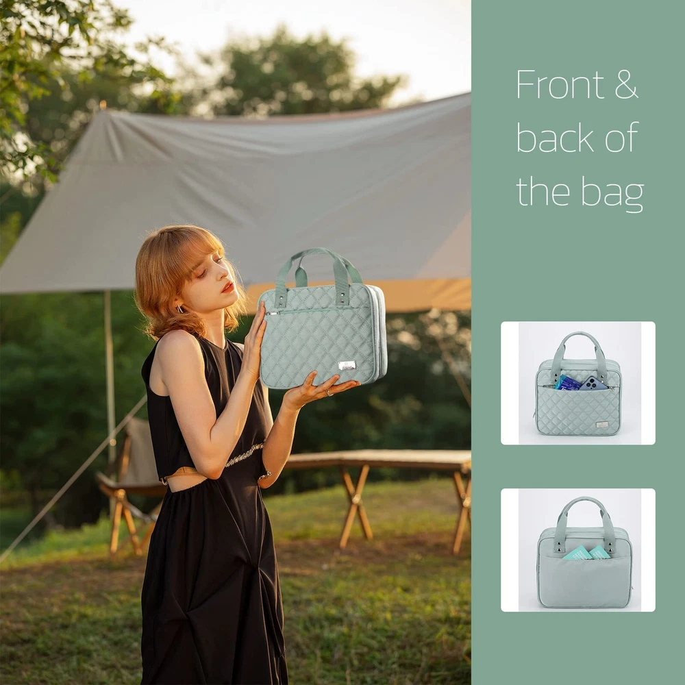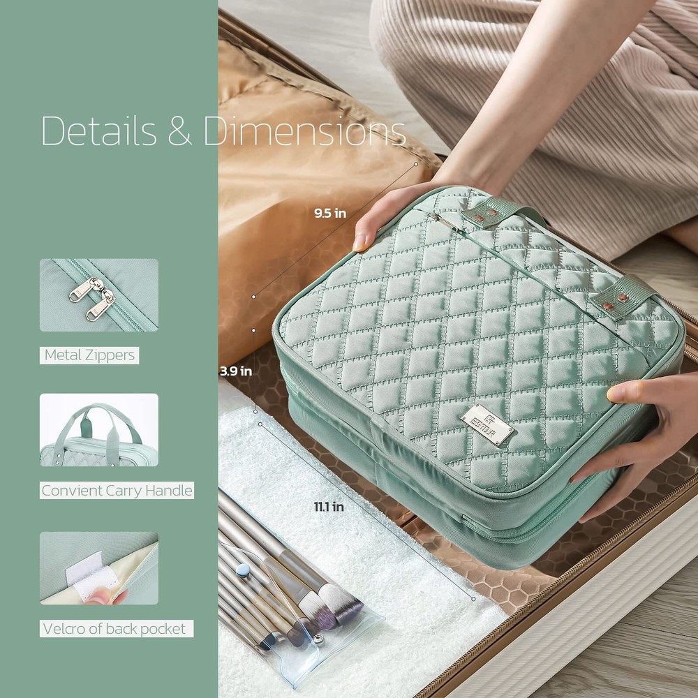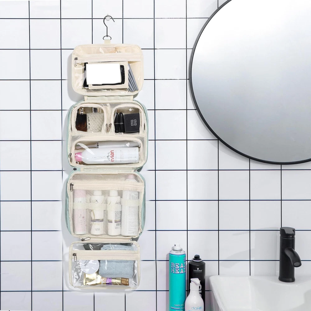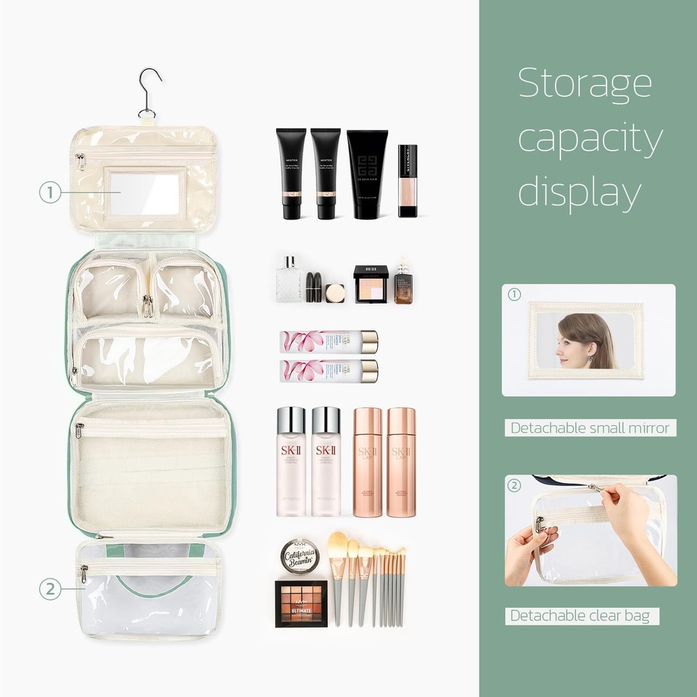 Estour Travel Toiletry Bag for Women, Large Travel Makeup Bag Organizer with Detachable Mirror and Transparent Cosmetic Bag, Suitable for Travel Size Toiletries, Gifts for Women-Mint Green Unique Detachable Design: The detachable makeup mirror allows your face to be clearly visible, and portable for makeup, skincare while camping or outdoors. And the detachable transparent cosmetic bag holds 1-2 days of vacation essentials, allows you to choose the capacity according to your needs, also TSA approved toiletry bag. Large Capacity: Folded 11*9.44*3.93 in. The hanging toiletry bag has 8 main compartments. Interior: 2*Waterproof Transparent Pockets, 1*Main Mesh Pockets with Elastic Strap, 3*Separate Compartment with PVC Lid, keep interior supplies organized and clear at a glance. Exterior: 1*Front Hidden Zipper Pocket, 1*Back Velcro Pocket, place facial masks, mobile phones, and other personal items. User-friendly Details: 360° rotating hook and anti-drop suction cup for easy hanging. Mesh pockets with elastic straps for keeping the bottle upright, avoiding liquid tilting leaks.PVC compartment for dry and wet separation, also easily visible. High-quality metal zippers, durable handles, each detail of the travel toiletry bag are convenient and portable for users. High-quality Fabric: The external material of the toiletry bags for traveling women is made of high-quality polyester fabric, comfortable, light, wear-resistant, and with foam interlayer that effectively protects internal supplies and prevents impact. Multifunction Makeup Organizer Bag: The toiletry bag can be used as a makeup bag, bathroom bag, or storage bag. Its compact, practical design, and beautiful appearance, great for overnight stays, long journeys, gym showers, and camping. Also a nice gift for friends. SHIPPING Domestic Buyers - We have confidence in our products, but if you are not fully satisfied please contact us within 30 days of purchase and you will get full refund. - We ship within 3 business days of payment, usually sooner - We offer FREE shipping on all orders! - We only ship to the lower 48 states, no APO/FPO addresses or PO Boxes allowed International buyers – please note: Import duties, taxes, and charges aren't included in the item price or postage cost. These charges are the buyer's responsibility. - Please check with your country's customs office to determine what these additional costs will be prior to bidding or buying. * Order Cancellation Policy ** You can return a product for up to 30 days from the date you purchased it. 1. The seller reserves the right to cancel the special case only due to eBay cancellation fee. 2. The decision of seller is the final. 3. The seller will respond to the cancellation request within 2 business days. Please wait for the result of cancellation. 4. In case the cancellation is not completed by some reasons, the buyer can follow the options below to get the refund. 4.1 The buyer can reject the item when it arrives. 4.2 The buyer can send the item back to the seller within 30 days If the buyer receives item (USA Shipment ONLY). The seller will provide the FREE return label to the buyer when the buyer opens " Return Item" case on eBay by using the reason as "Change my mind" ONLY. 5. When buyer has placed the order. The order will be processed and completed by automatic warehouse system within 5 minutes. In case that buyer sends the cancellation request after 5 minutes of placing the order, the request will be rejected. **Sending direct message to cancel the order is not allowed for every case.* Return Policy For the return case - If buyer would like to return the items for refund or replacement, please CONTACT SELLER to receive the free return label from seller. The refund or replacement will be processed with the tracking number of return label which is provided by seller only. The other ways of return which are not approved by seller will not be processed for the refund or replacement.