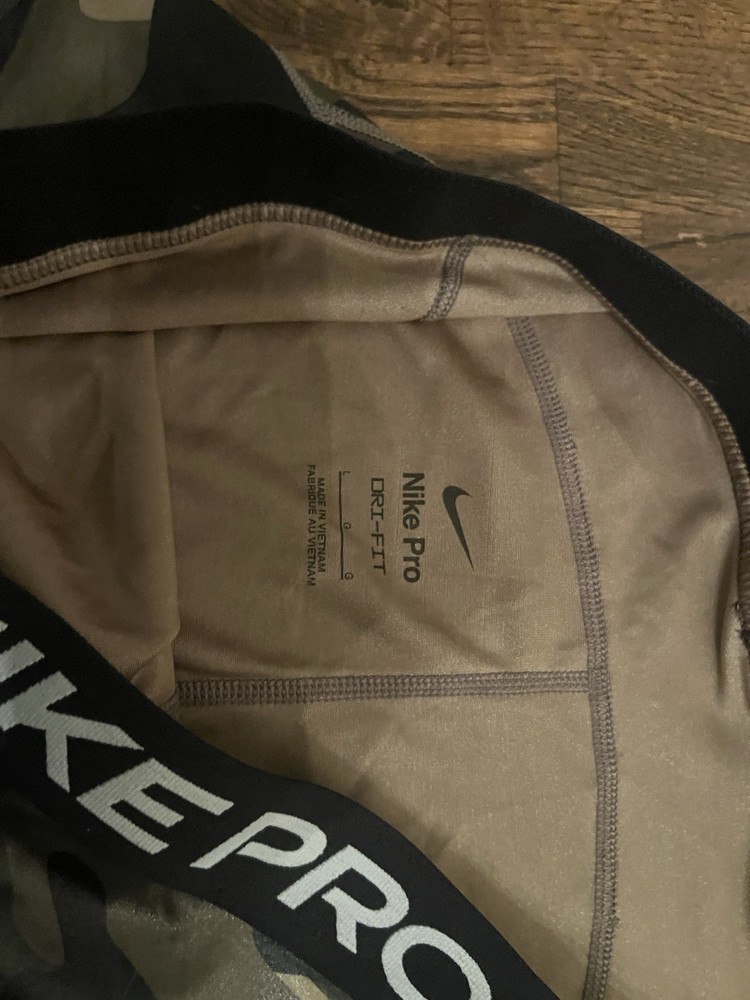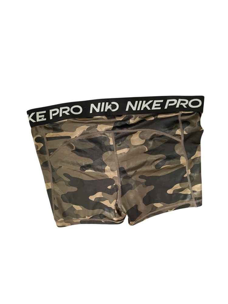These Nike Pro compression shorts are designed for women in a size medium, featuring a stylish camo design. Made with Dri-FIT technology, these activewear shorts are perfect for workouts and active occasions. The regular fit and compression style provide both comfort and support, making them a great addition to any athletic wardrobe.