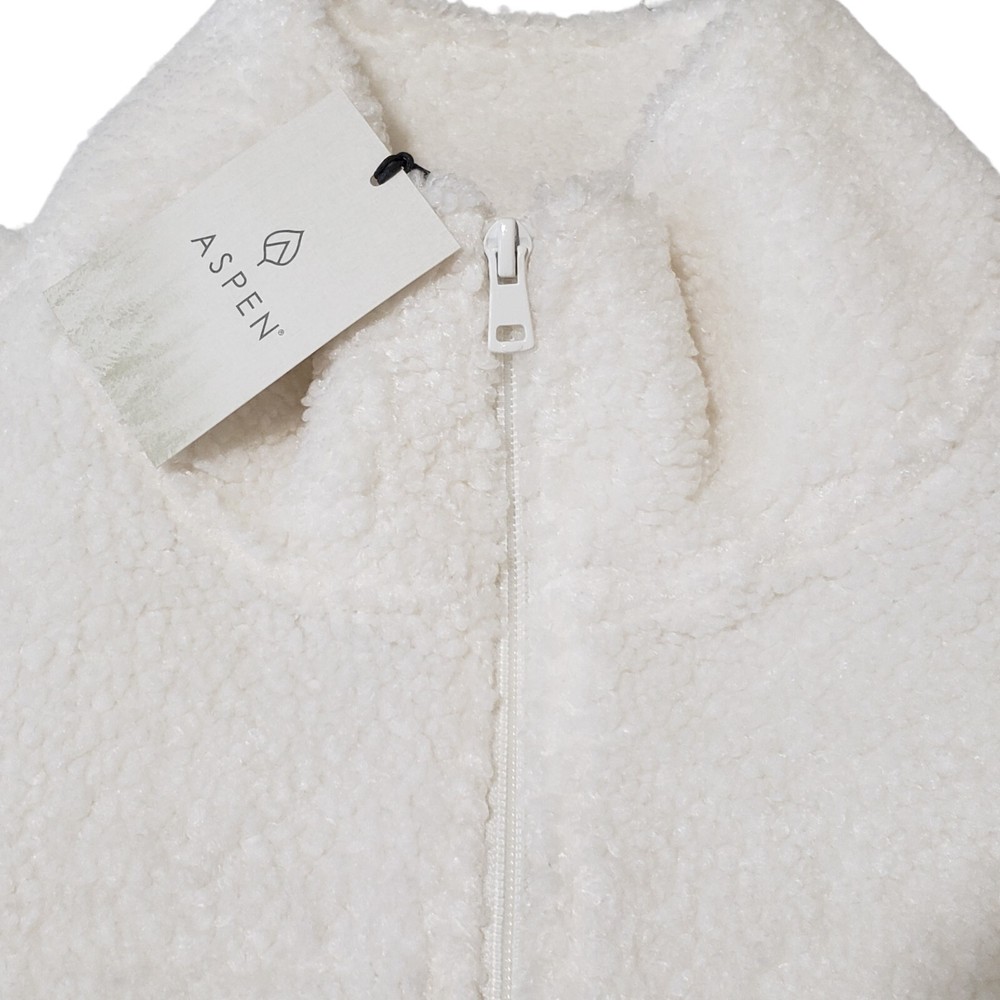 Aspen Solid Fleece Bomber Zip-Up Jacket Women Large White NWT Add a cozy layer of warmth to your cold-weather wardrobe with Aspen's solid bomber jacket, made from supersoft polyester fleece. New with Tags! Supersoft and cozy polyester fleece Full-zip front with high collar Hand pockets Ribbed cuffs and hem Long sleeves Closure: Zipper Fabric: 100% polyester Care: Machine wash, dry flat