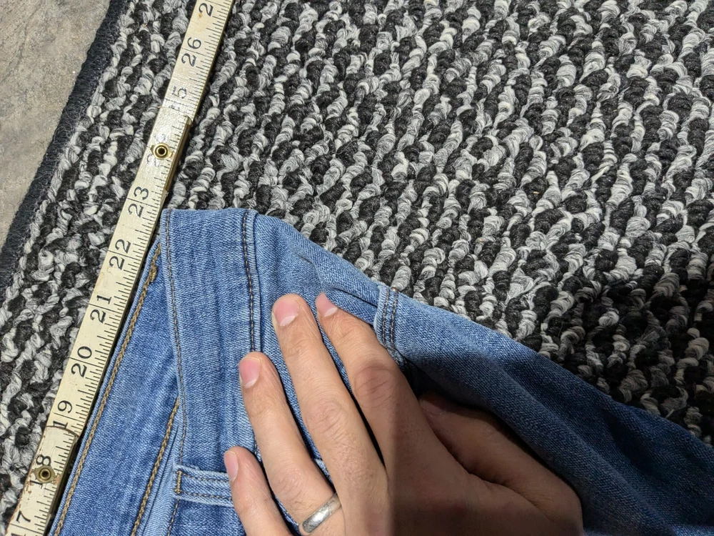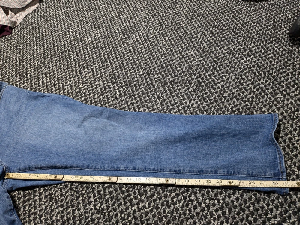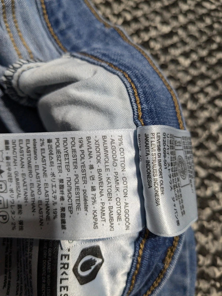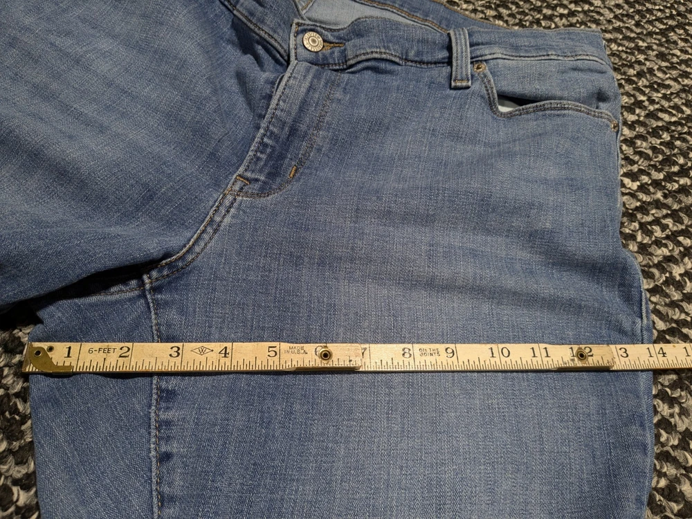 These are in good used condition. The waste is 20 in in a measurement and with the elastic I could stretch it to 23in quite easily. There is a tear and a Levi logo on the back which you can see in the photos. Otherwise these jeans are in great condition. Lou's ask if you have any questions. The measurements are in the photos. Women's Levi's 415 Classic Boot jeans in blue, size 40 with a 29-inch inseam. They feature an elastic waist for comfort and a zip closure. Made of a polyester and cotton blend, they have a solid pattern with button accents and the Levi's logo. This classic fit style has a red tab detail and is suitable for regular sizing.