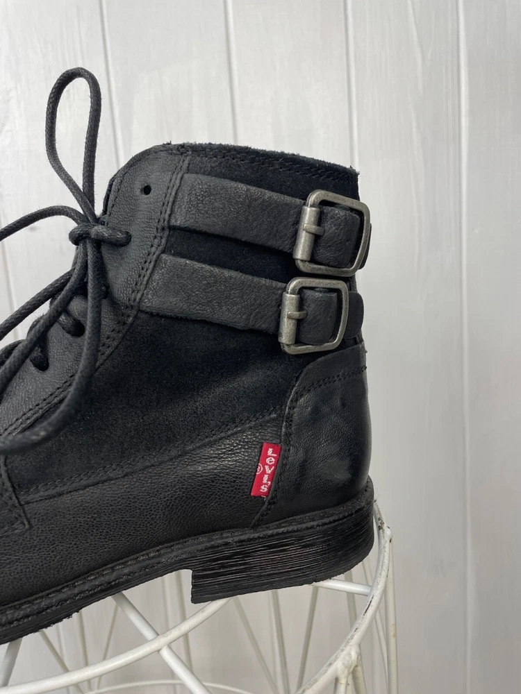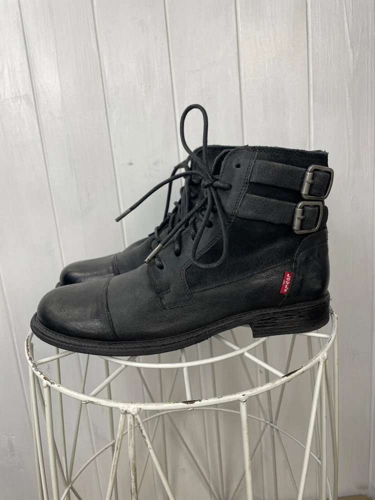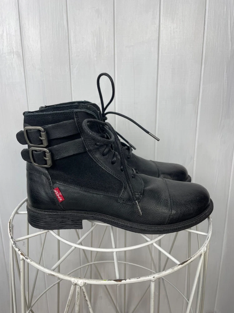 Womens Levi`s Biker Style Mid-Calf Black Leather Biker Style Boots Size 39\7.5US