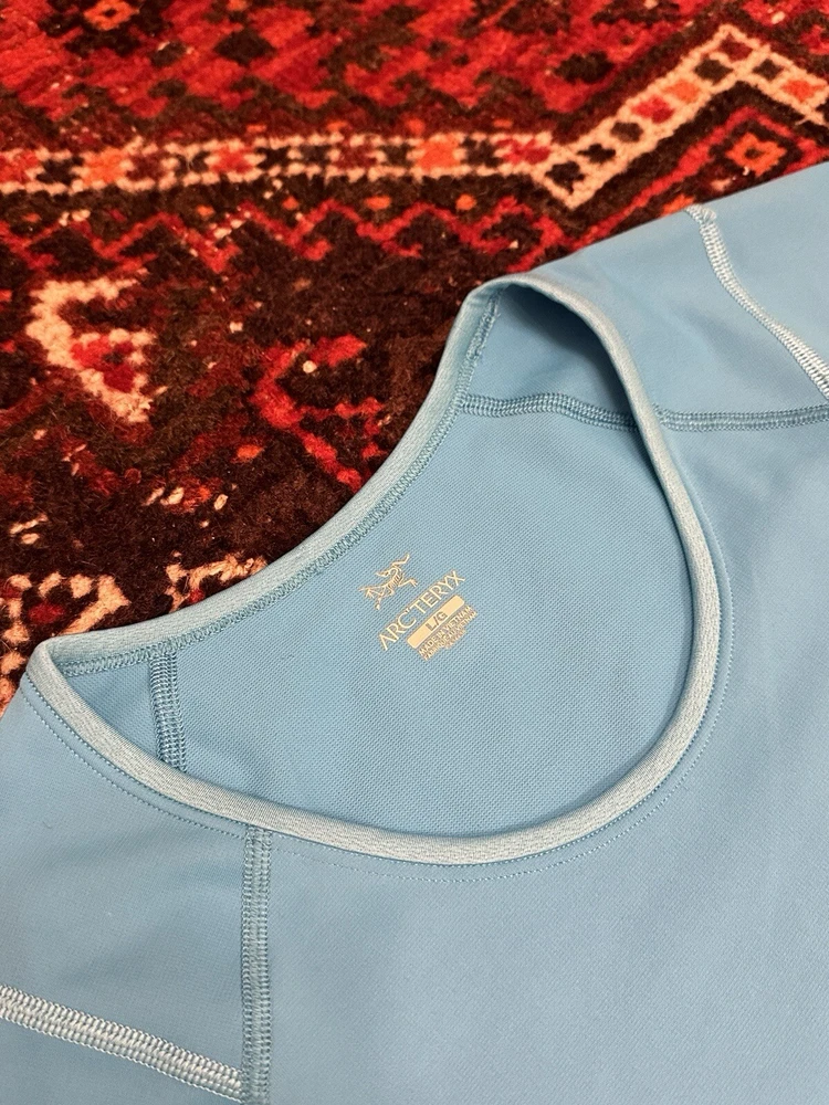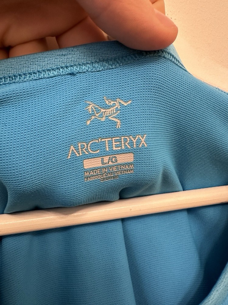 In perfect condition, a sports top from arcteryx, please check last pictures for the true color of the item. Has a reflective back. Womens size L. 46 x 65cm Arc arcteryx womens sport workout top gym gymwear skims treniruotems moteriskas virsus sportas sportui