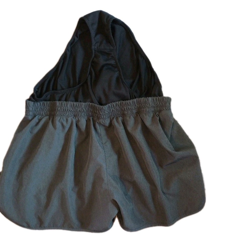 These Dip Shorts for women in size Large are perfect for gym, running, or any activewear occasion. The charcoal gray color and solid pattern make them versatile for all seasons. Made from 100% polyester, these athletic fit shorts have a built-in liner for added comfort and are machine washable for easy care. With features like moisture-wicking, breathable fabric, and an elastic waist, these shorts provide both style and functionality for your fitness needs. Good condition, please refer to pictures for condition details. E-4