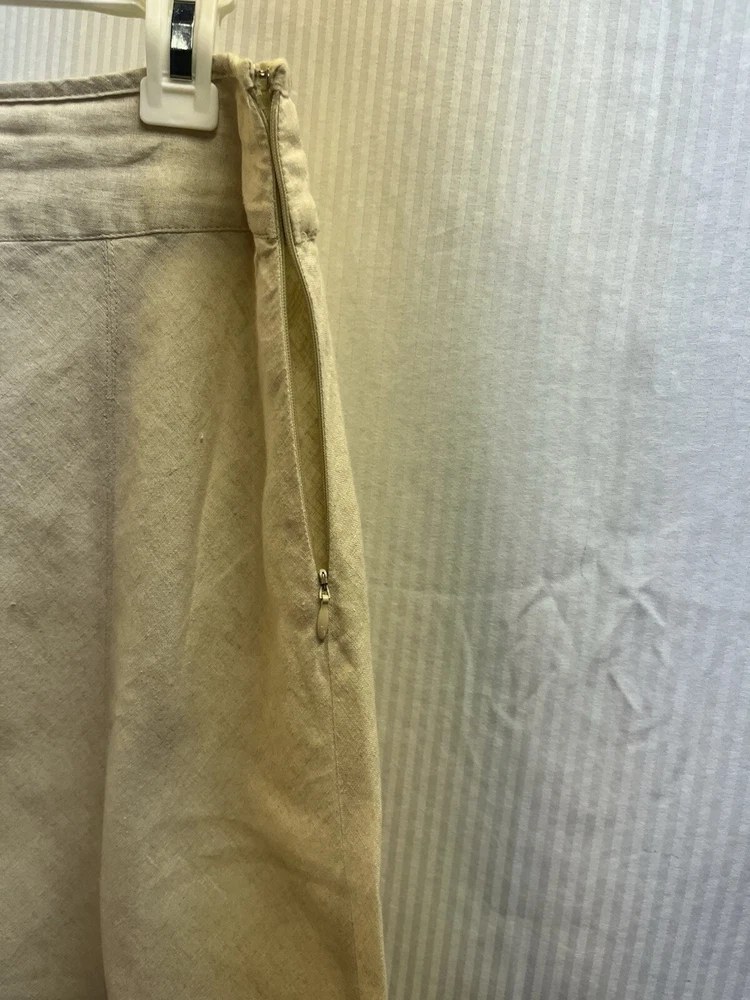Women’s 100% linen face skirt by charter club size 10 with side zip long. Let me know if you have any questions. Thanks for looking item is in good condition