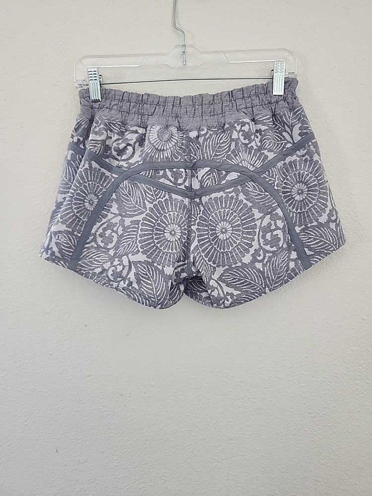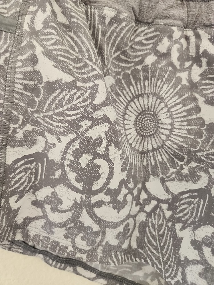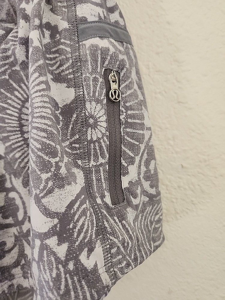 Experience the perfect blend of comfort and style with these Lululemon Hotty Hot Shorts, designed for women who love to stay active. In a size 6, these shorts feature a grey and white floral print that adds a touch of elegance to your workout wardrobe. The athletic fit ensures you can move freely, whether you're running, jogging, or engaging in cross-training activities. These shorts are not only fashionable but also functional, equipped with an elastic waist for a comfortable fit and convenient pockets for your essentials. The lined design provides additional coverage and support, making them ideal for gym workouts or any sports activity. Embrace the Lululemon legacy with a piece that combines performance with a classic athletic aesthetic.