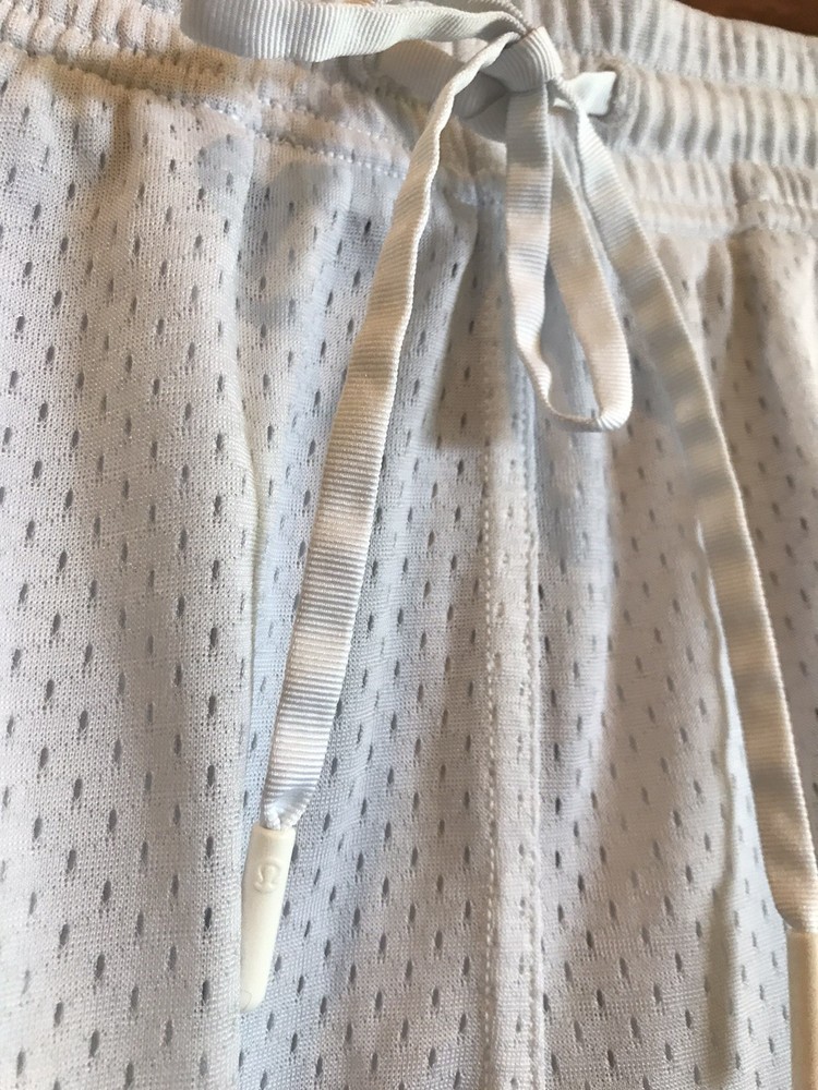 Lululemon. Women’s size 6. Mesh. Fully lined - soft lining. Made of recycled polyester. Lining made of 81% nylon, 19% Lycra. Relaxed fit. White in color. Comes from a clean, smoke free home.
