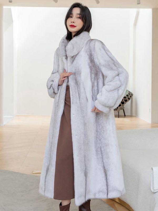 Women's Oversized Faux Mink Hooded Winter Coat Mid-Length Warm Casual