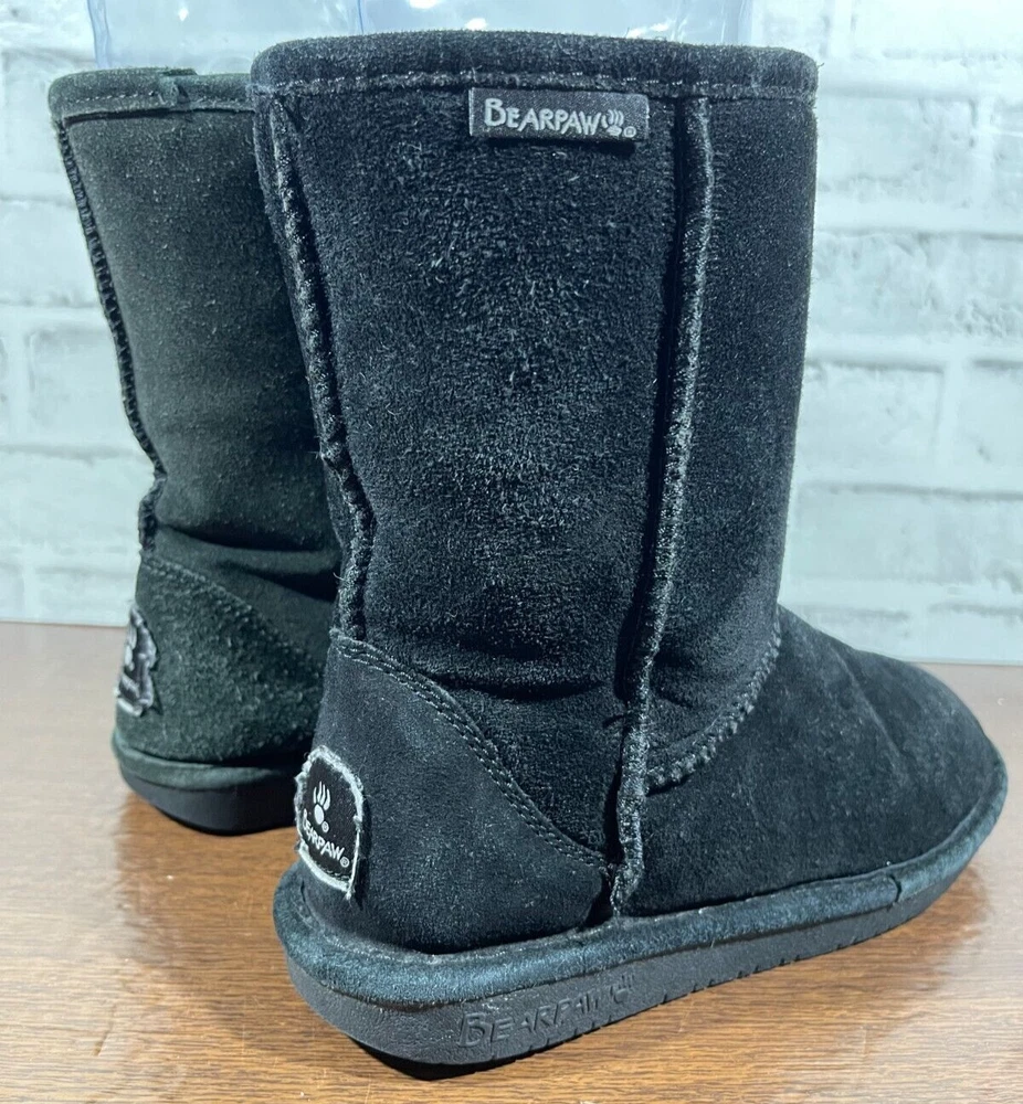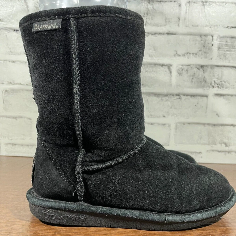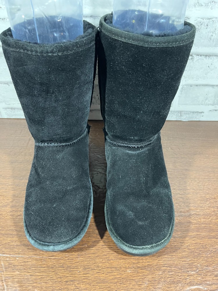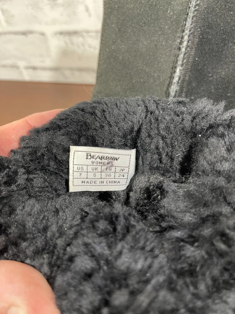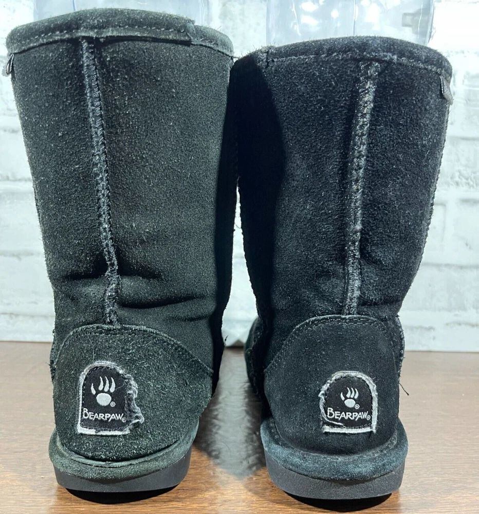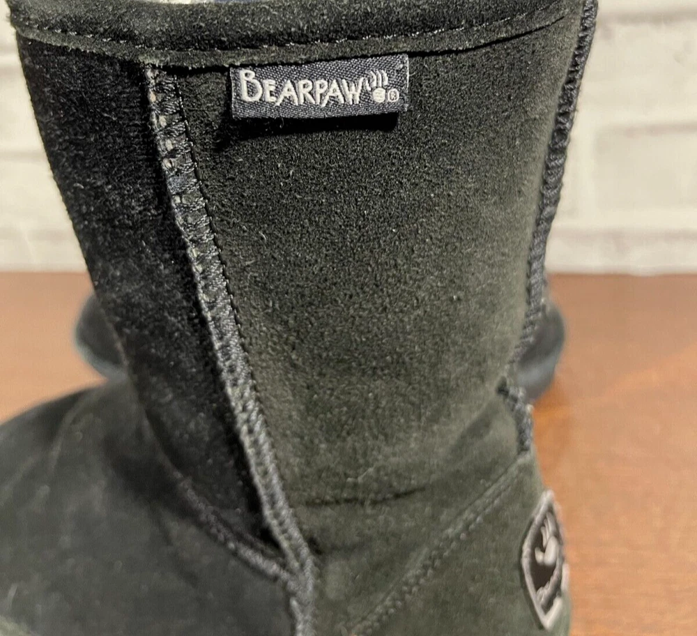 The Bearpaw Women's Mid Calf Suede Boots in Black are a stylish and functional choice for colder seasons. These snow boots feature a round toe shape with a flat heel, faux fur trim accents, and a logo detail. The boots are lined with sheepskin and insulated for warmth, making them suitable for winter and fall weather. The pull-on closure and mid-calf shaft style provide convenience and comfort, while the rubber outsole ensures durability for various occasions such as travel, casual wear, or workwear. Ideal for those looking for classic and cozy footwear. Good preowned condition with normal preowned wear and slight heel wear as pictured. Please see all photos. For clothing specifically, see photos for all measurements and/or any issues if applicable. Pay close attention to the measurements as the size of the garment may quite possibly be different than the actual measurement(s) due to washing, shrinkage, or stretching as these are used clothes. The size in the title is the size on the tag of the garment. See photos for measurements of actual measurements as they may differ. ALWAYS CHECK THE MEASUREMENTS IN THE PHOTOS. This will remove any questions on measurements as well as always cover the possibility of human error in the listing(s) in the case of a typo or oversight. All clothing and shoes have been washed/cleaned, and comes from a smoke free environment. If shoe trees appear in the photos, they are for photography purposes only to illustrate how the shoes look filled out, and are not included. I am available for questions. I accept or negotiate reasonable offers. Have an amazing day. Thank you.