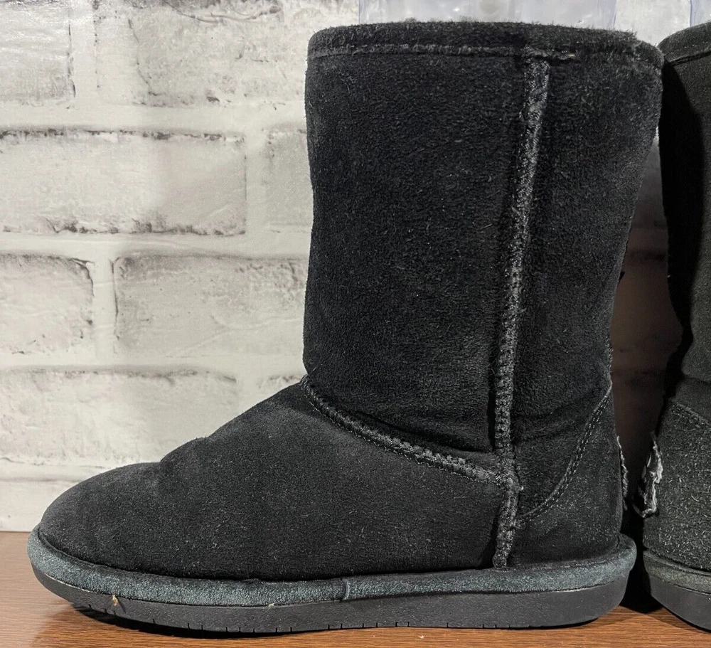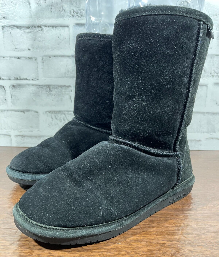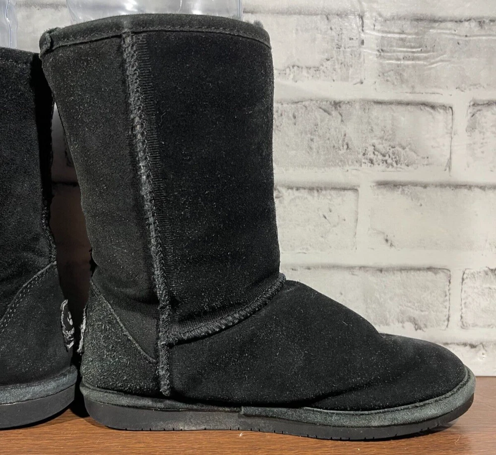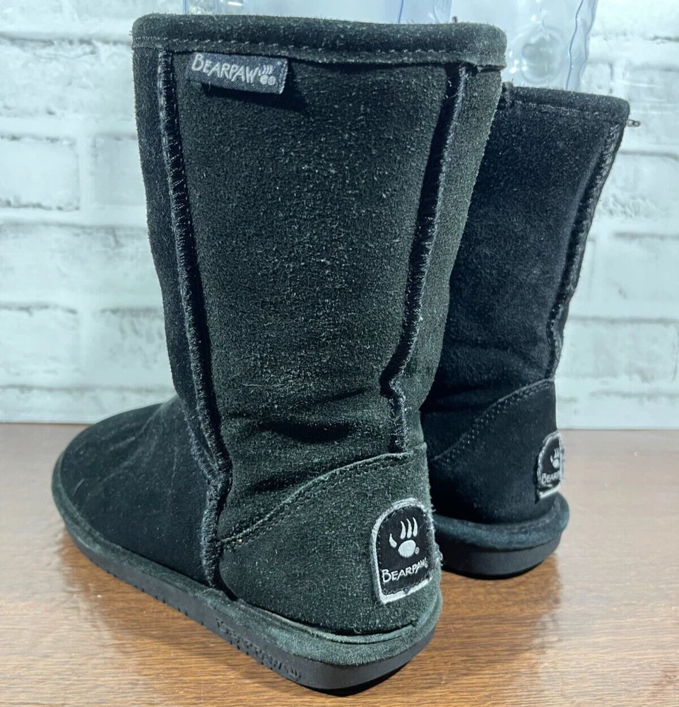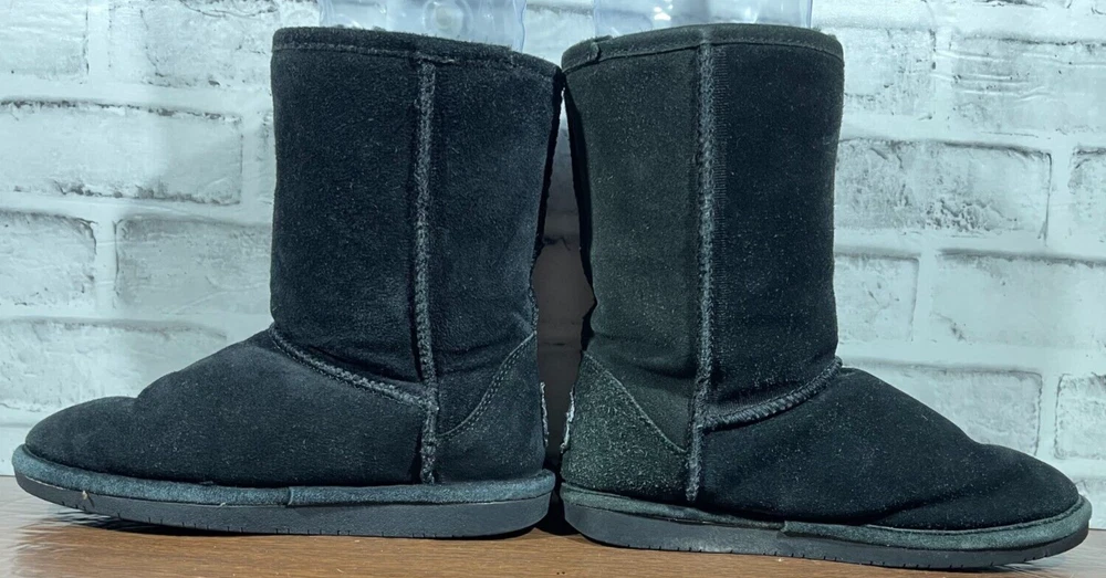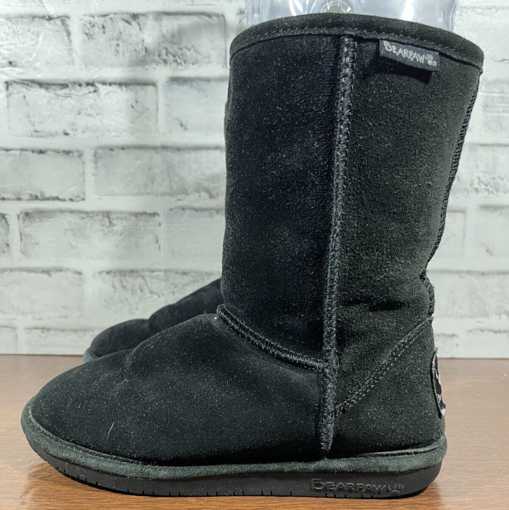 The Bearpaw Women's Mid Calf Suede Boots in Black are a stylish and functional choice for colder seasons. These snow boots feature a round toe shape with a flat heel, faux fur trim accents, and a logo detail. The boots are lined with sheepskin and insulated for warmth, making them suitable for winter and fall weather. The pull-on closure and mid-calf shaft style provide convenience and comfort, while the rubber outsole ensures durability for various occasions such as travel, casual wear, or workwear. Ideal for those looking for classic and cozy footwear. Good preowned condition with normal preowned wear and slight heel wear as pictured. Please see all photos. For clothing specifically, see photos for all measurements and/or any issues if applicable. Pay close attention to the measurements as the size of the garment may quite possibly be different than the actual measurement(s) due to washing, shrinkage, or stretching as these are used clothes. The size in the title is the size on the tag of the garment. See photos for measurements of actual measurements as they may differ. ALWAYS CHECK THE MEASUREMENTS IN THE PHOTOS. This will remove any questions on measurements as well as always cover the possibility of human error in the listing(s) in the case of a typo or oversight. All clothing and shoes have been washed/cleaned, and comes from a smoke free environment. If shoe trees appear in the photos, they are for photography purposes only to illustrate how the shoes look filled out, and are not included. I am available for questions. I accept or negotiate reasonable offers. Have an amazing day. Thank you.