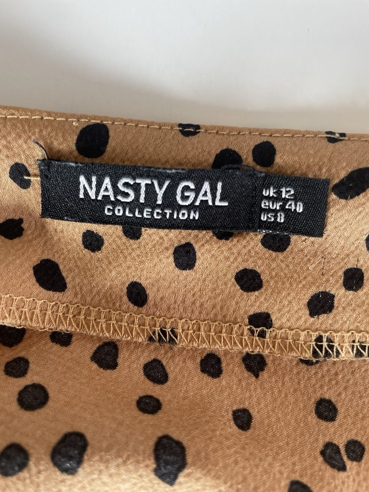 Please see images for imperfections. This Nasty Gal Leopard Animal Print Pencil Midi Skirt in size 8 is a stylish and versatile piece perfect for various occasions. Made of polyester satin fabric, this gold skirt features an elastic waist for comfort and a pull-on closure for easy wear. The mid-rise skirt falls to a midi length, making it suitable for parties, casual outings, or even festivals. With its trendy animal print pattern and rock-inspired theme, this skirt is a must-have for any fashion-forward woman's wardrobe. Hand wash only to maintain its quality. Measurement taken flat: Waist: 16" Hip: 20" Length: 30" Cog6n198