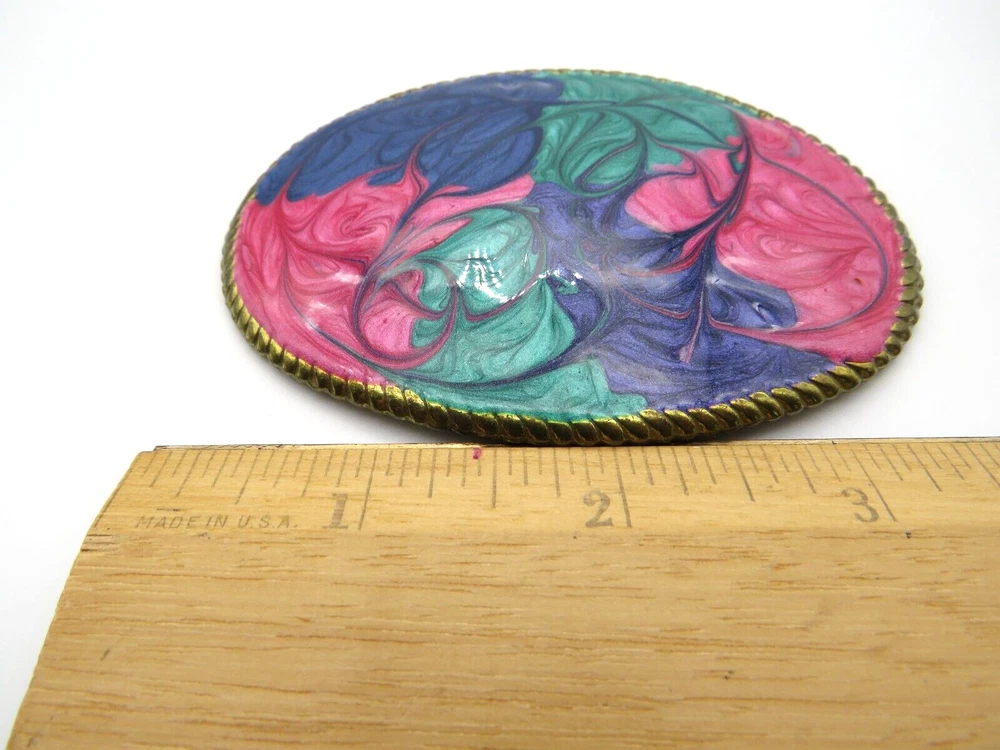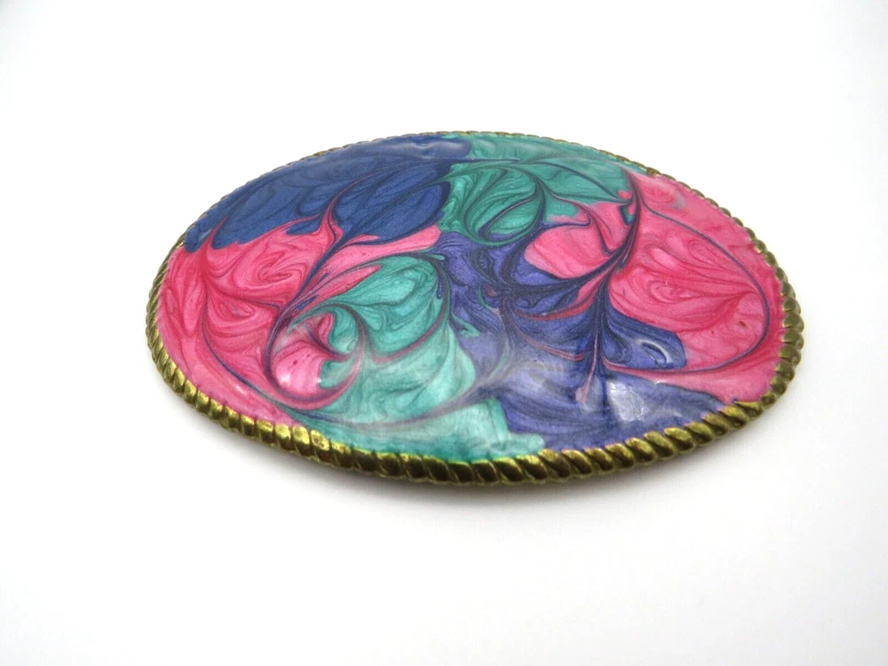 Vintage Enamel Oval Belt Buckle Swirl Glitter Pink Green Blue Retro 1980s Thanks for looking… Please review photos closely. Message me for any questions you have.