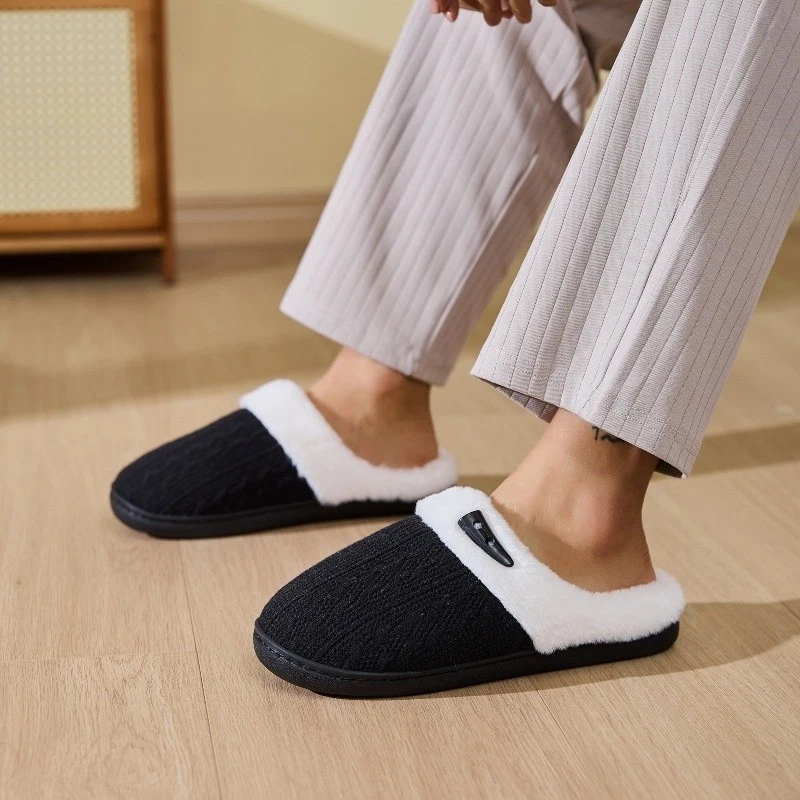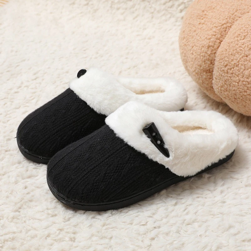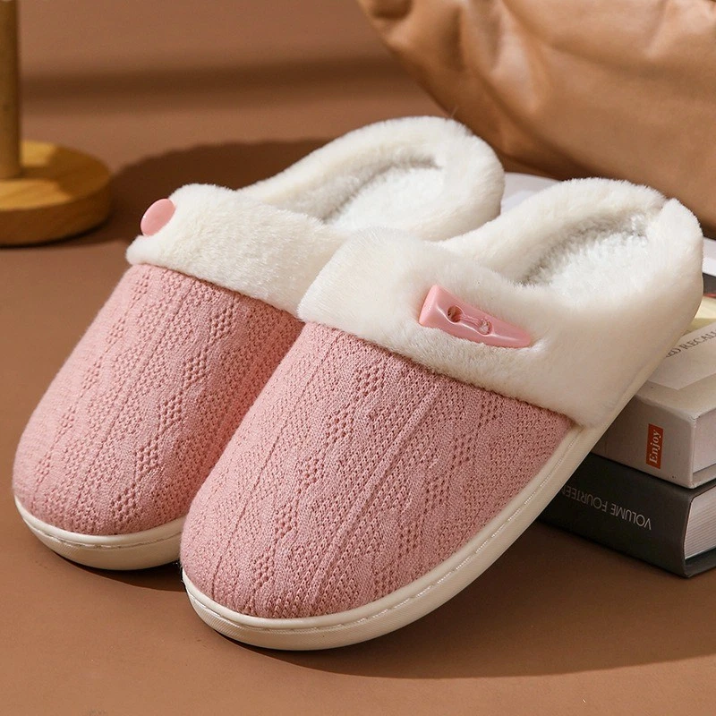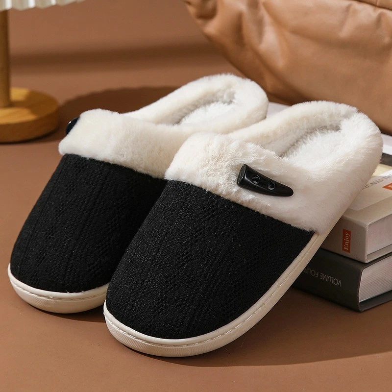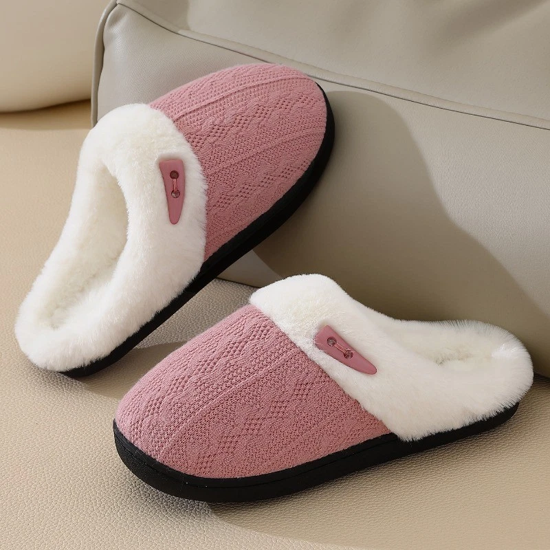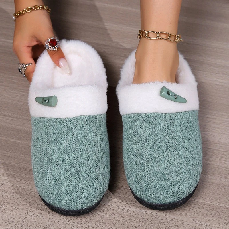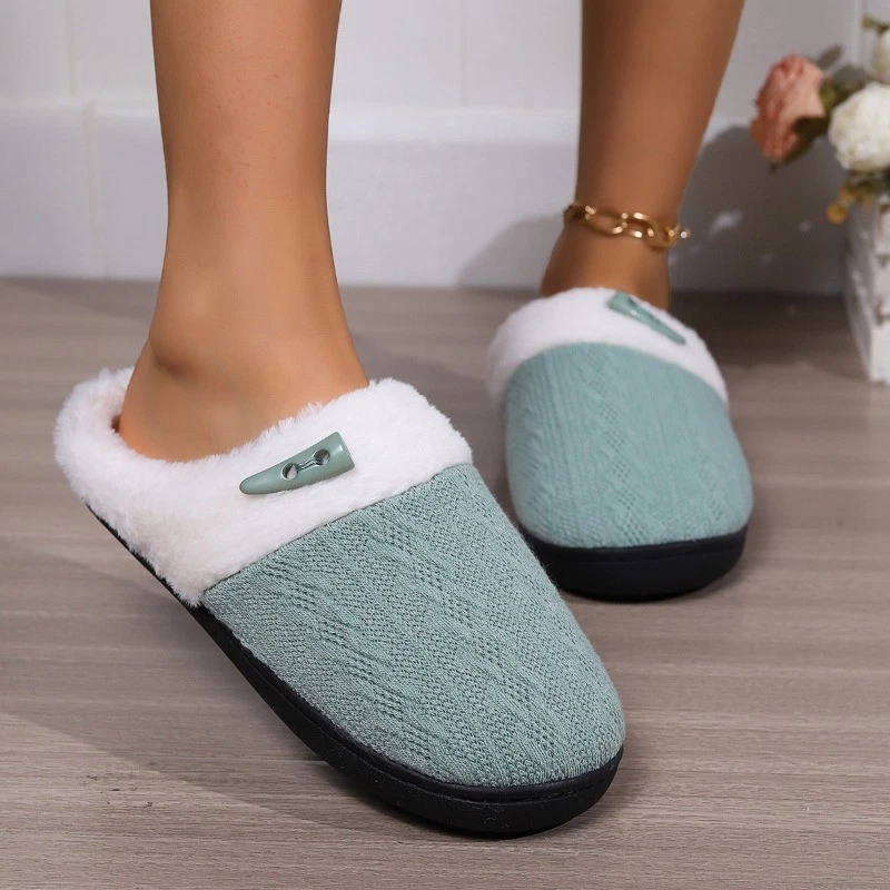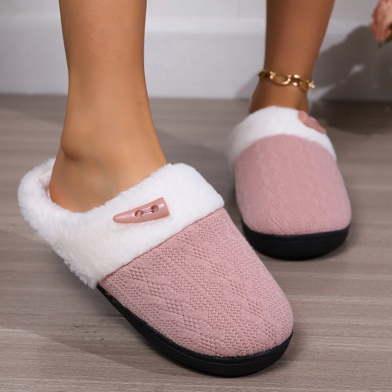 Women's Plush Fleece-Lined Cotton Slippers Cozy Non-Slip Indoor House Shoes Warm