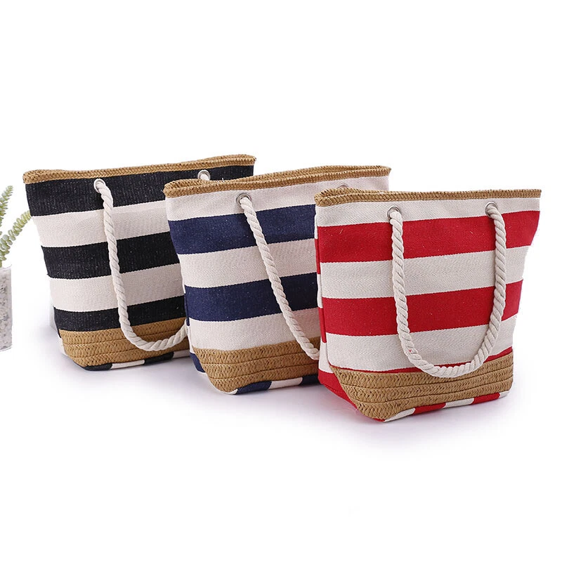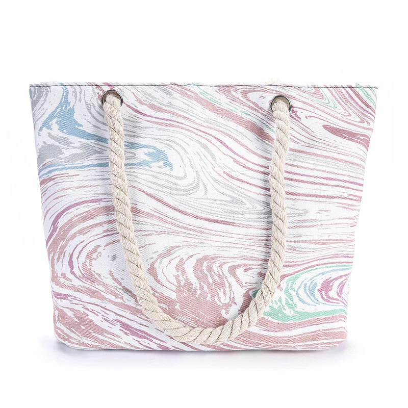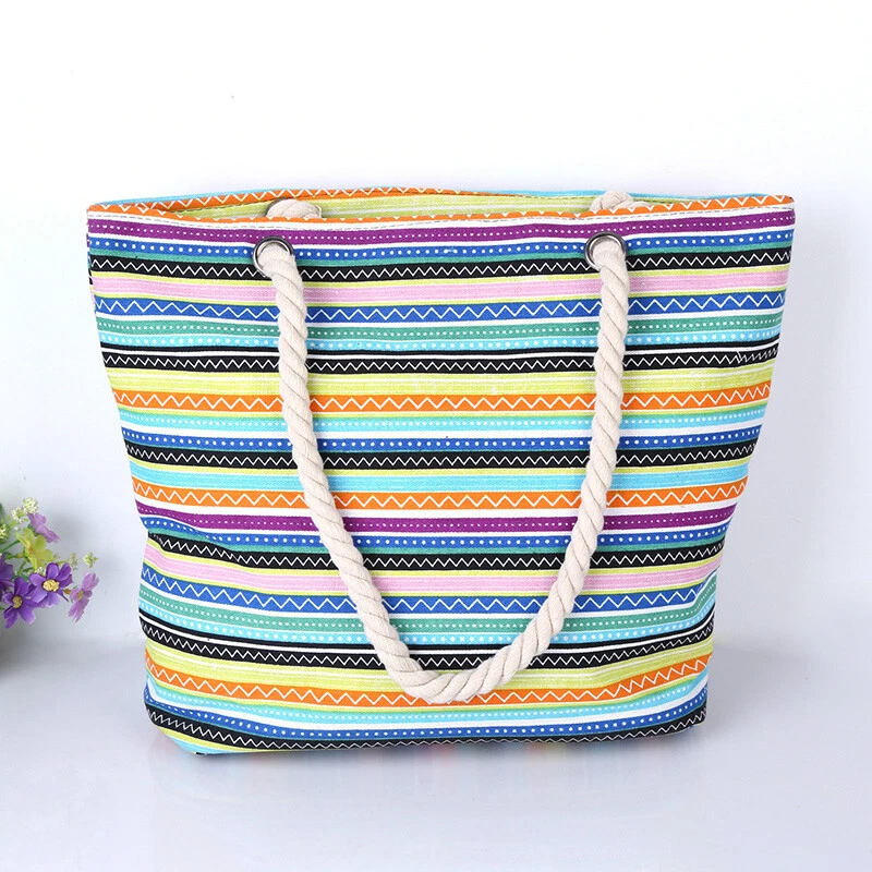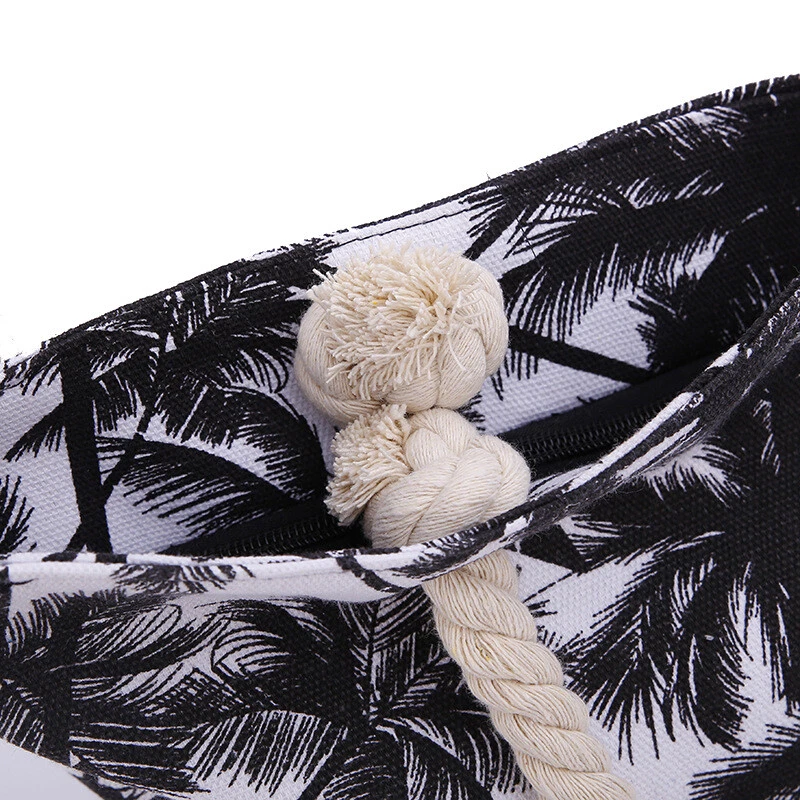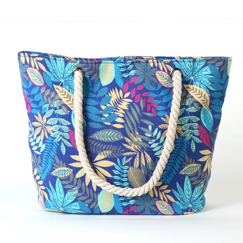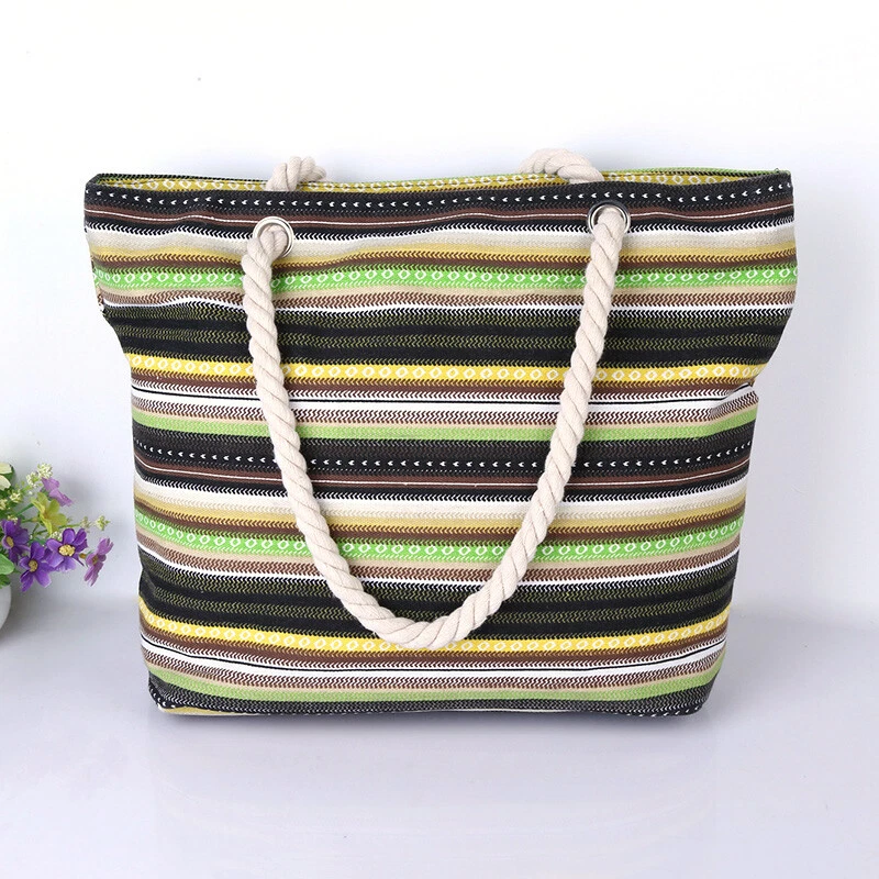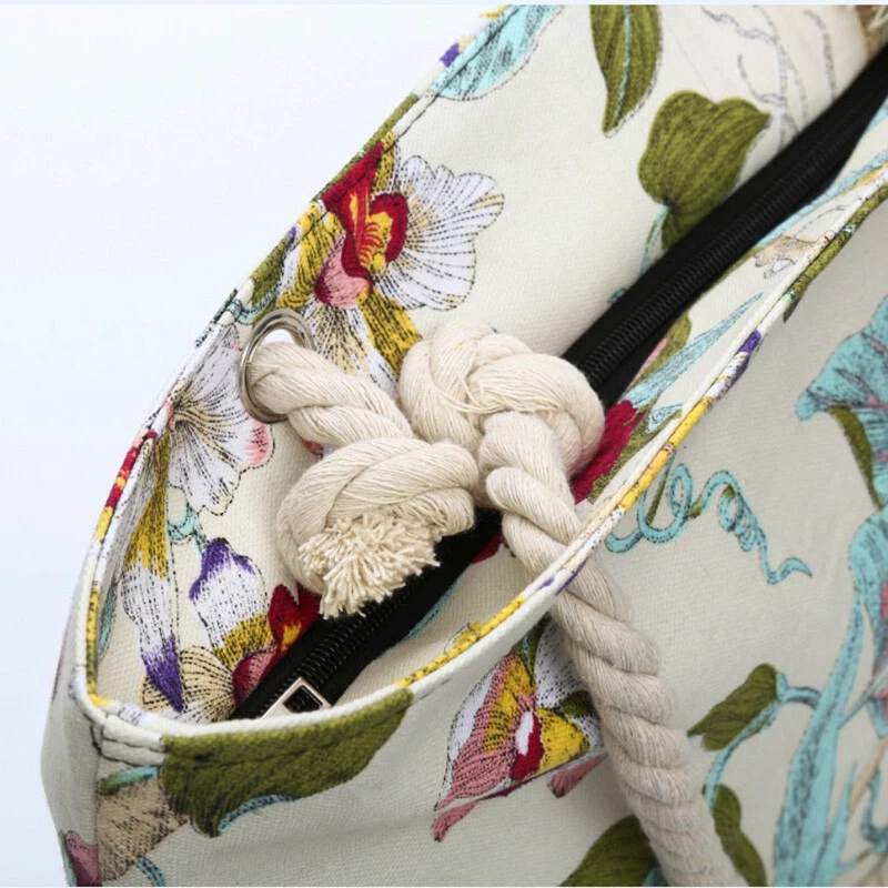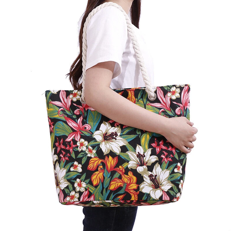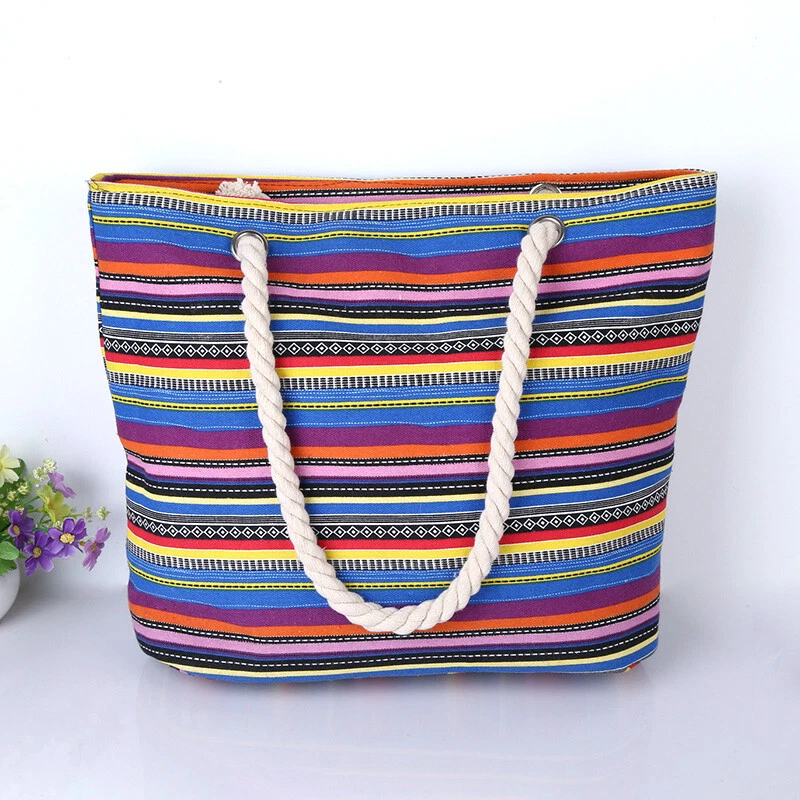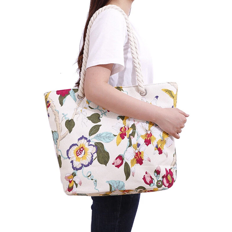Womens Print Cotton Rope Shoulder Strap Handbag Large Capacity Beach Tote Bags