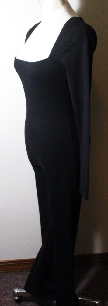 See my EBAY STORE at “SAMTPC53” to view 100’s more of my Women's SKIRTS!!! Combine Shipping: (on multiple items you pay full price on heaviest item first and then HALF PRICE shipping on ALL other clothes items. Women's Flared Full Body Suit. Brand: QINSEN. Description: women's Nylon stretch QINSEN long sleeve flared body suit, see pics. Color: Black. Size: L (please see measurements). Measurements: 15" armpit to armpit, 54" neckline to bottom hem, 30" inseam, 20" insleeve. Material: 78% Nylon, 22% Spandex. Condition: Excellent condition, NWT.