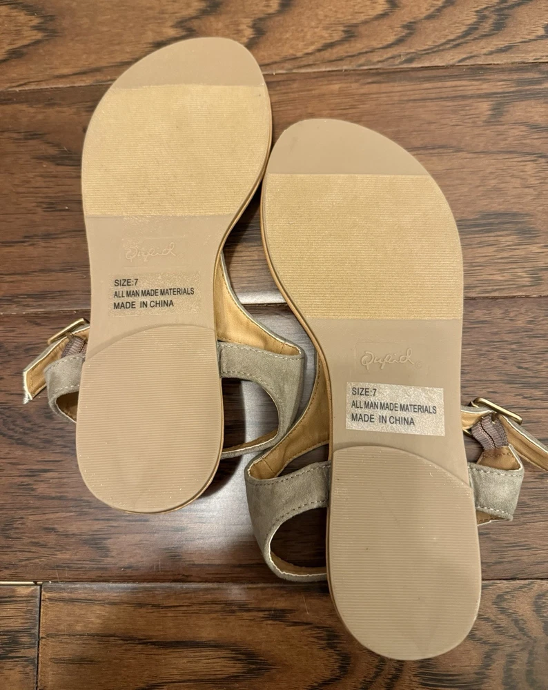 Occasion: Casual AU Shoe Size: 7 Season: Spring, Summer Closure: Buckle Model: Qupid Archer-506 Department: Women Country of Origin: China Personalize: No Pattern: Solid Vintage: No Style: Thong Features: Ankle Strap Customized: No Heel Height: Low (1-1.9 in) Upper Material: Synthetic US Shoe Size: 7 Type: Sandal Brand: Qupid Heel Style: Flat Color: Beige