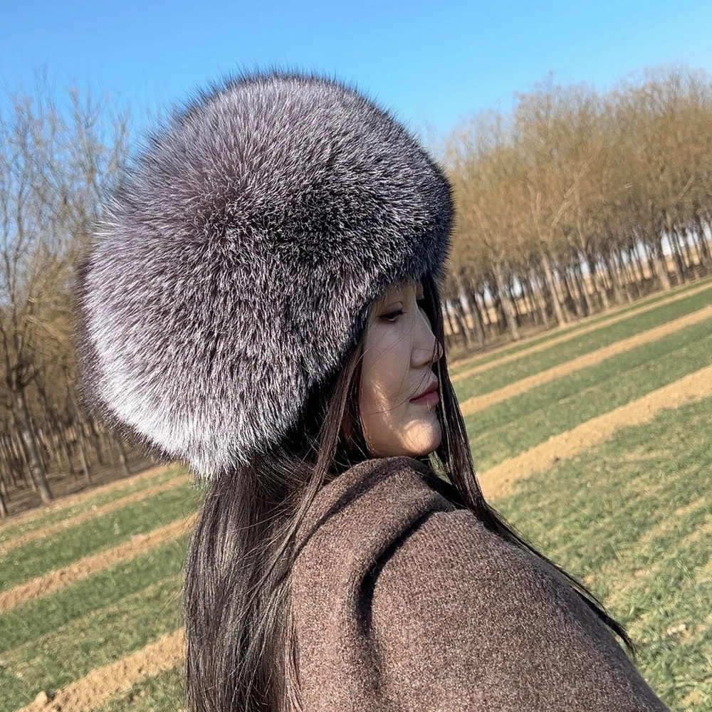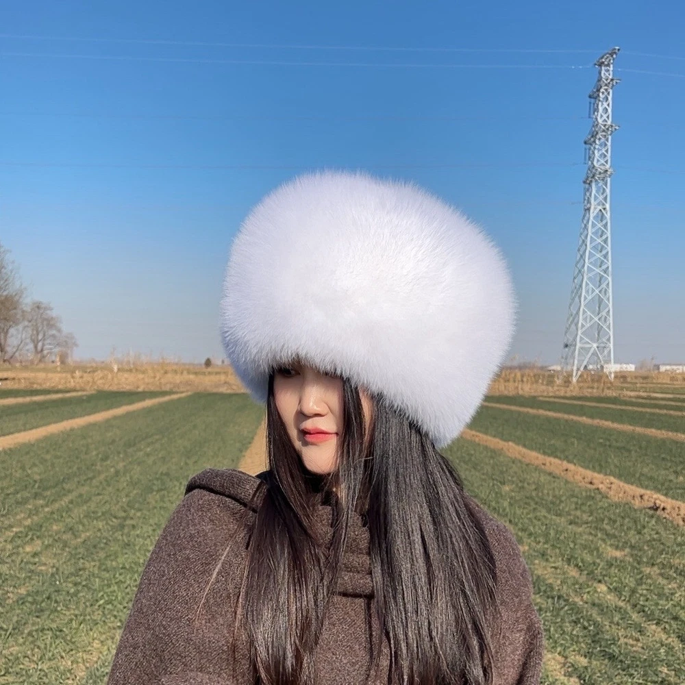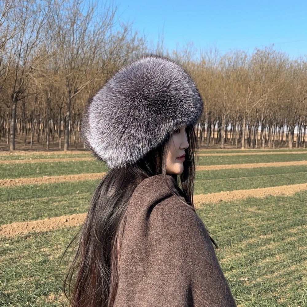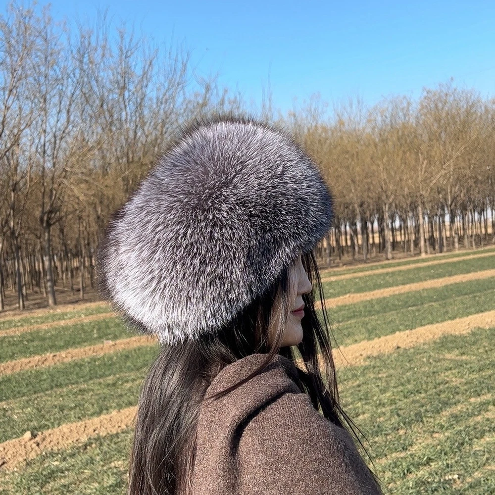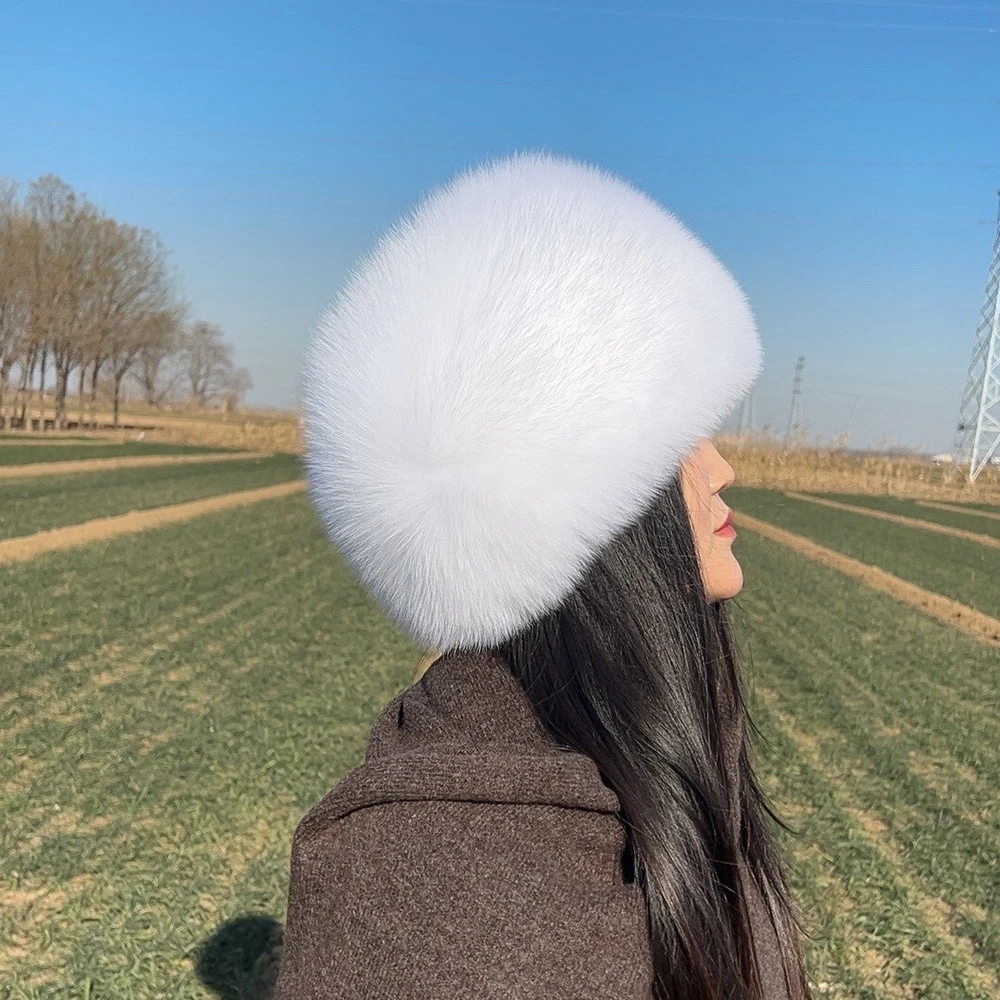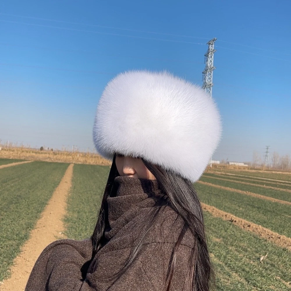 Women's Warm Extra Large Real Fox Fur Earmuffs Earlap Ear Muff Leather Bracket