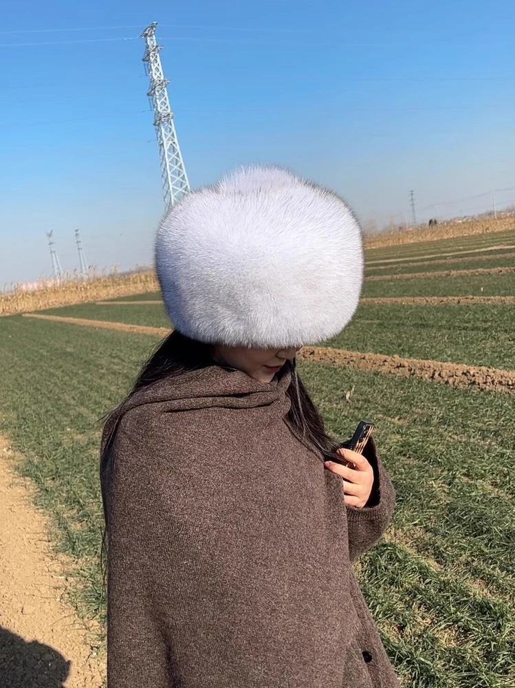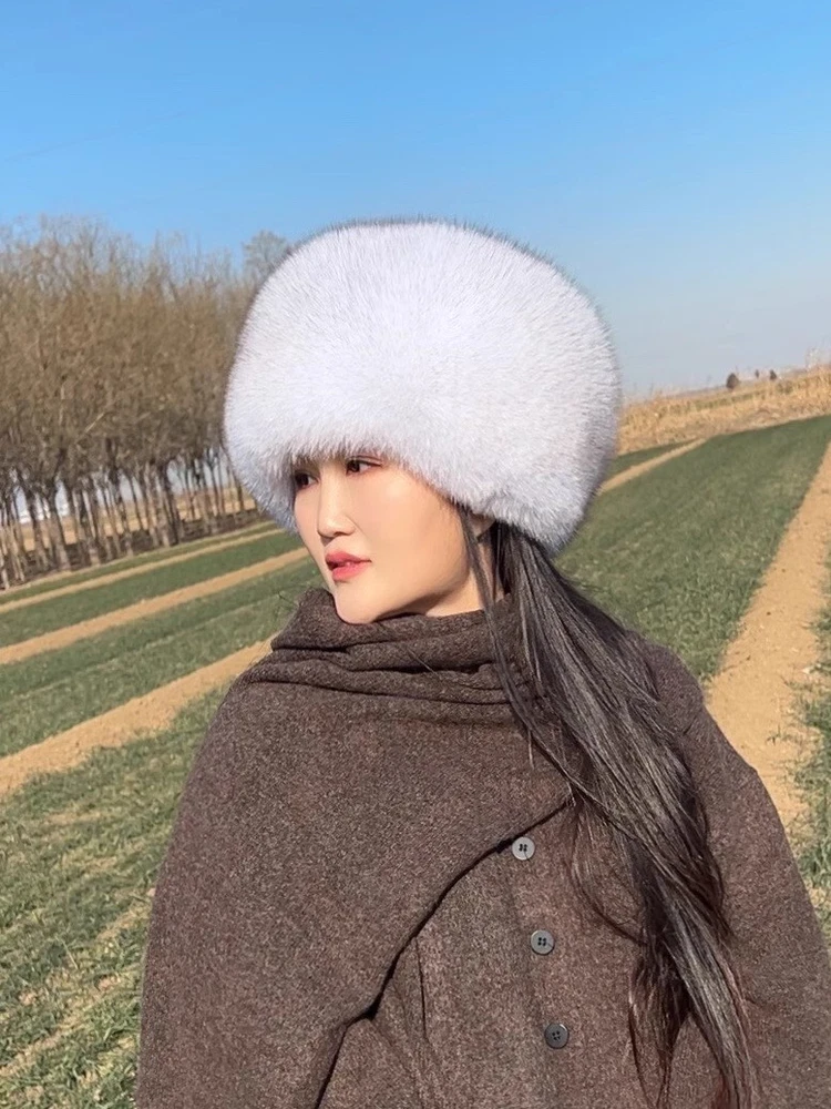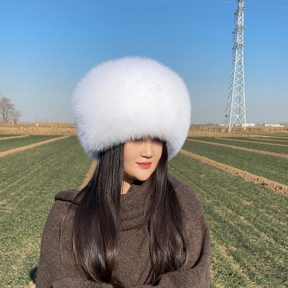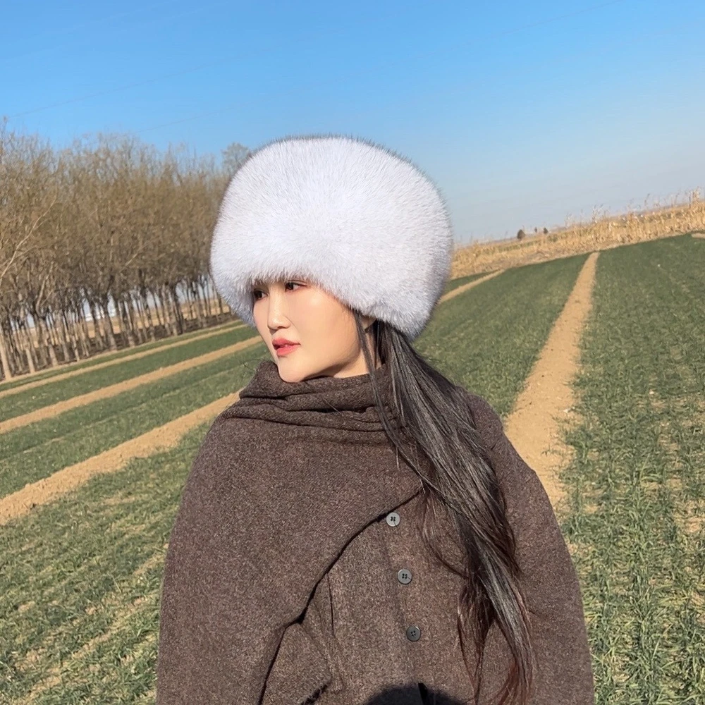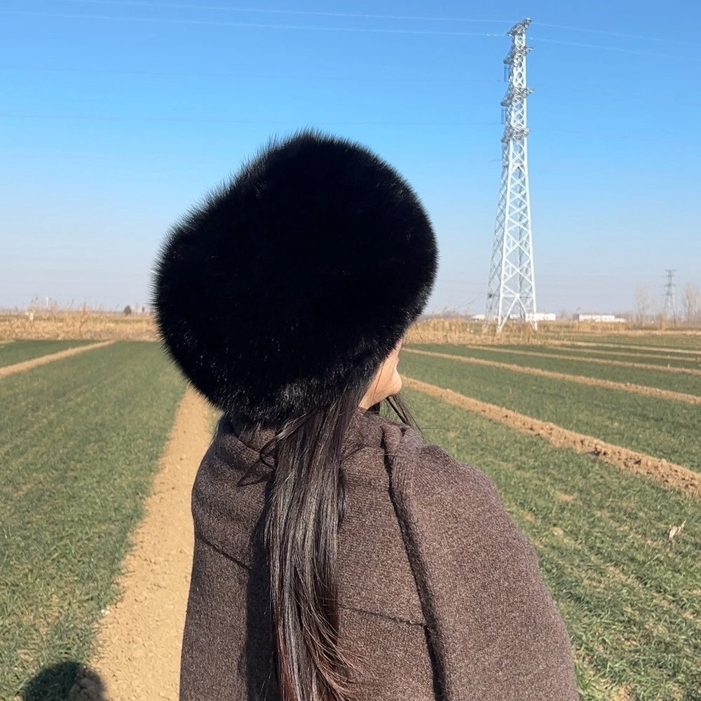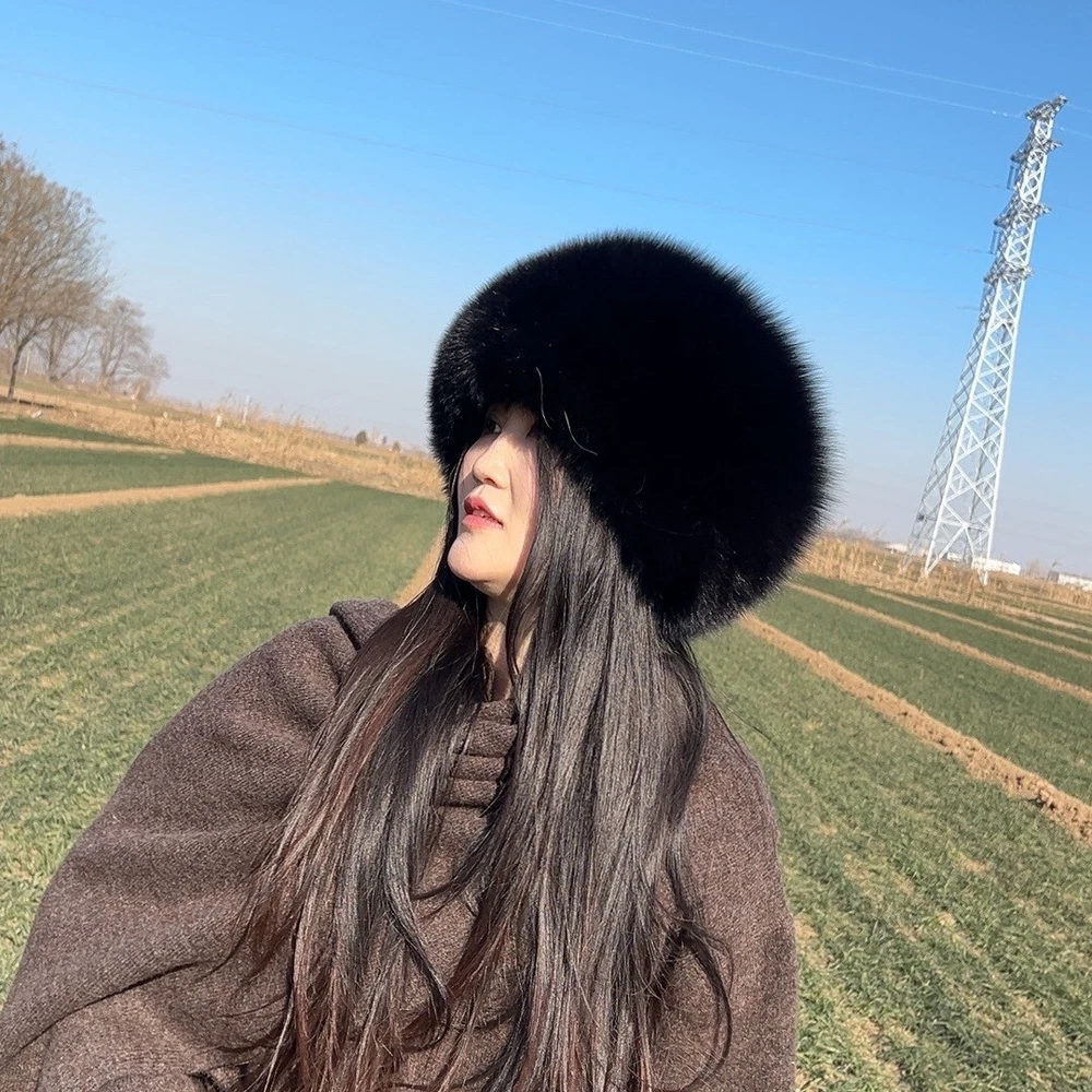 Women's Warm Extra Large Real Fox Fur Earmuffs Earlap Ear Muff Leather Bracket